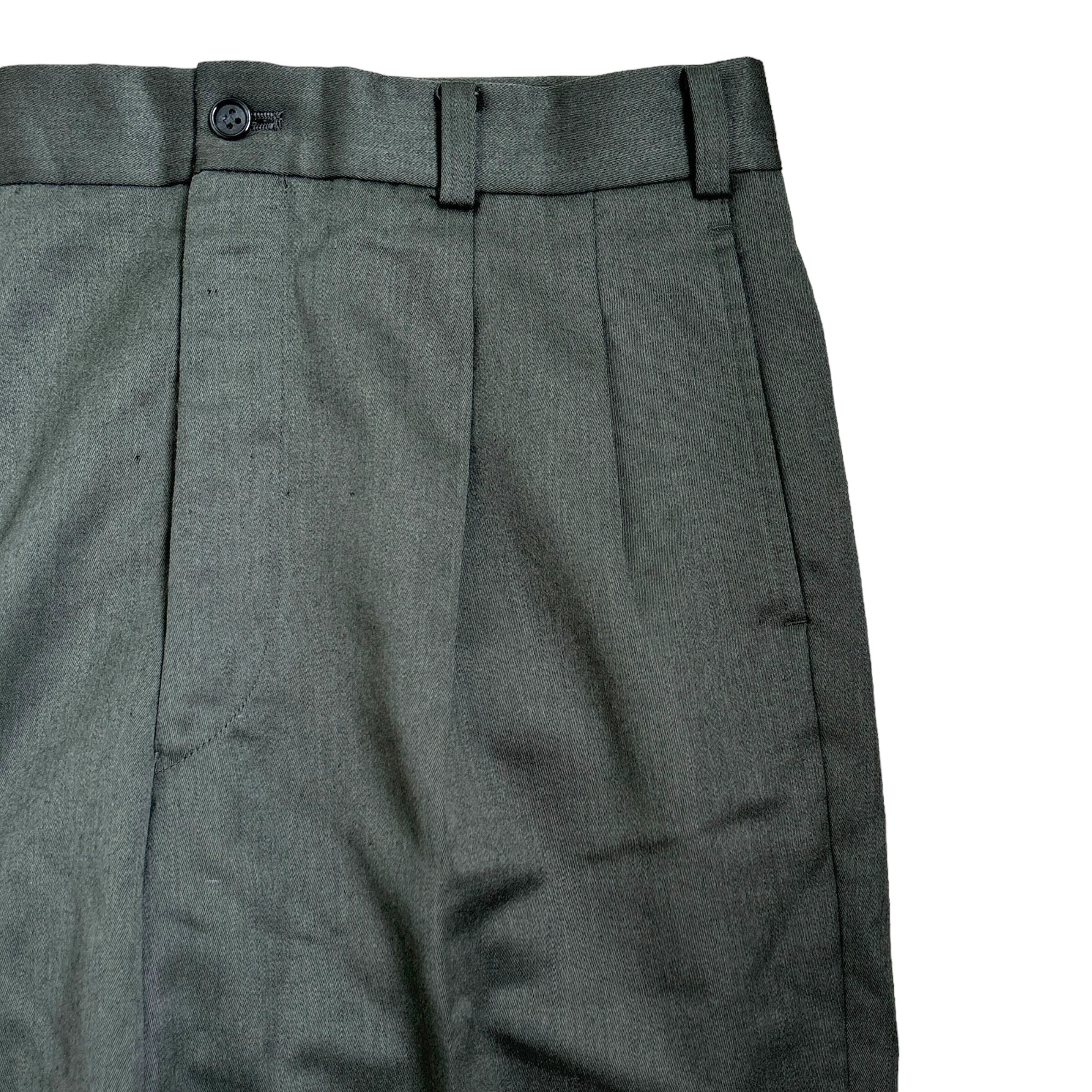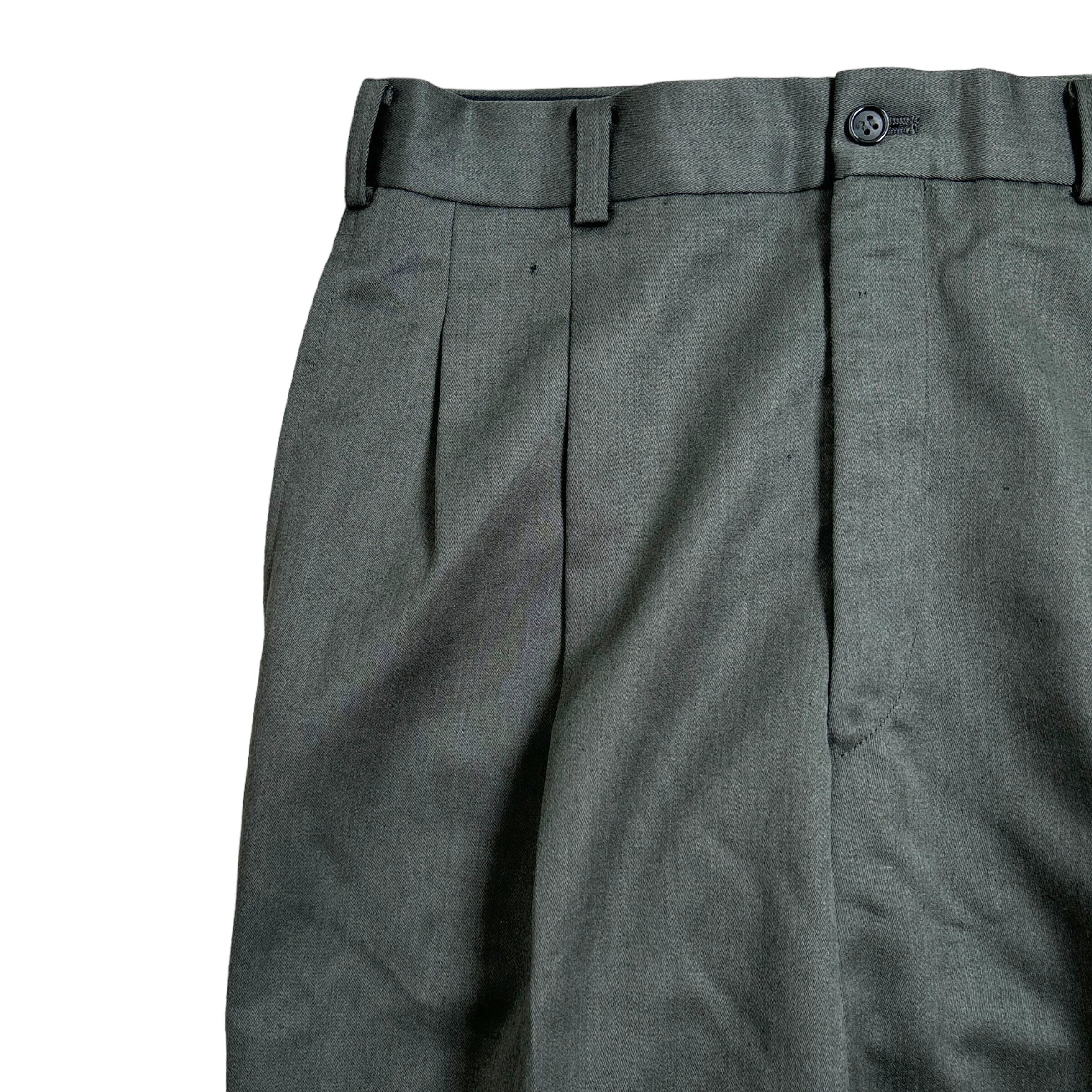 80s~90s UNKNOWN two tuck slacks 80年代〜90年代 ブランド不明 2タック スラックス 古着 センタープレス モスグリーン