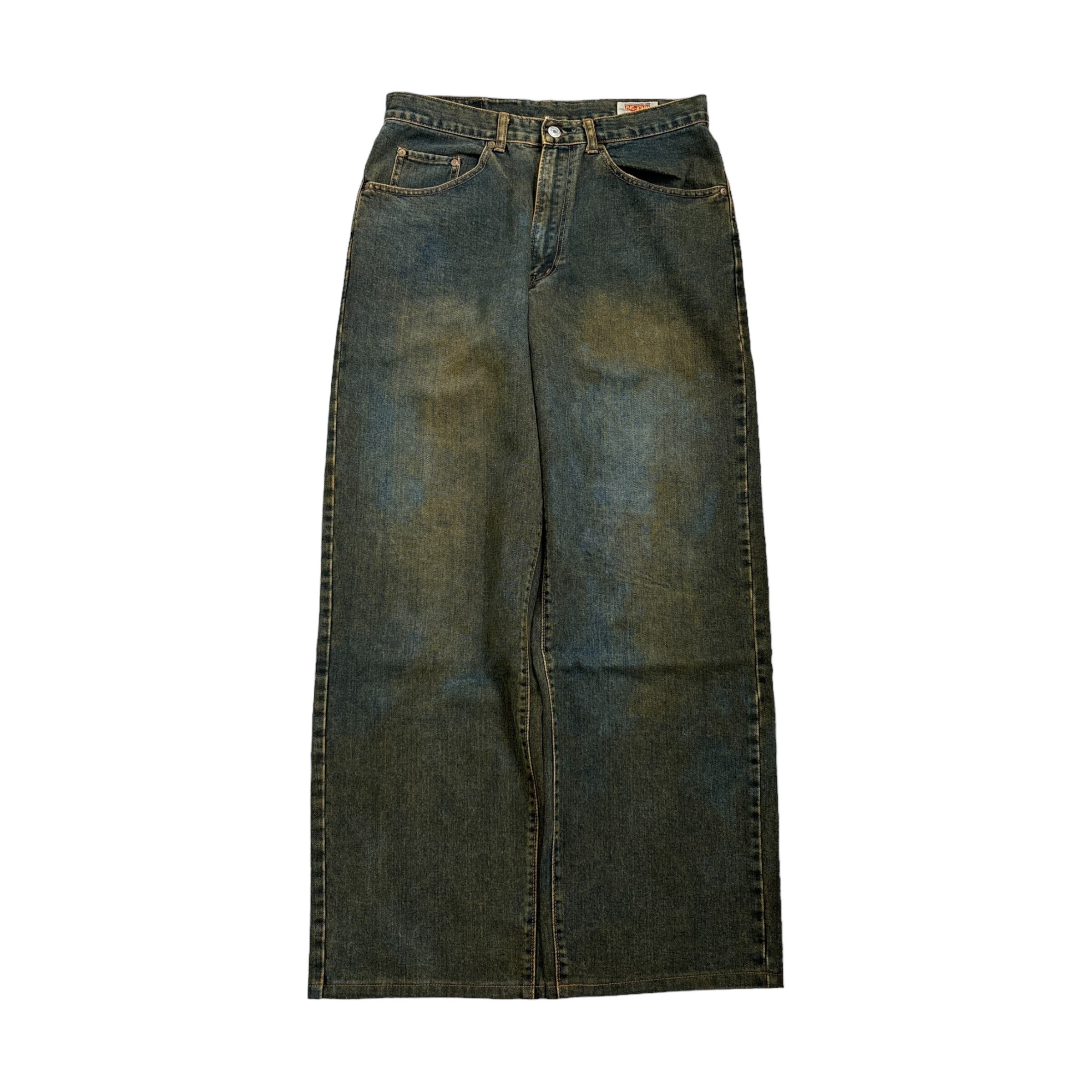 90s~00s BIG JOHN wide flare denim pants ビッグジョン フレアデニムパンツ ワイド ヴィンテージ加工 ユーズド加工 古着 極太