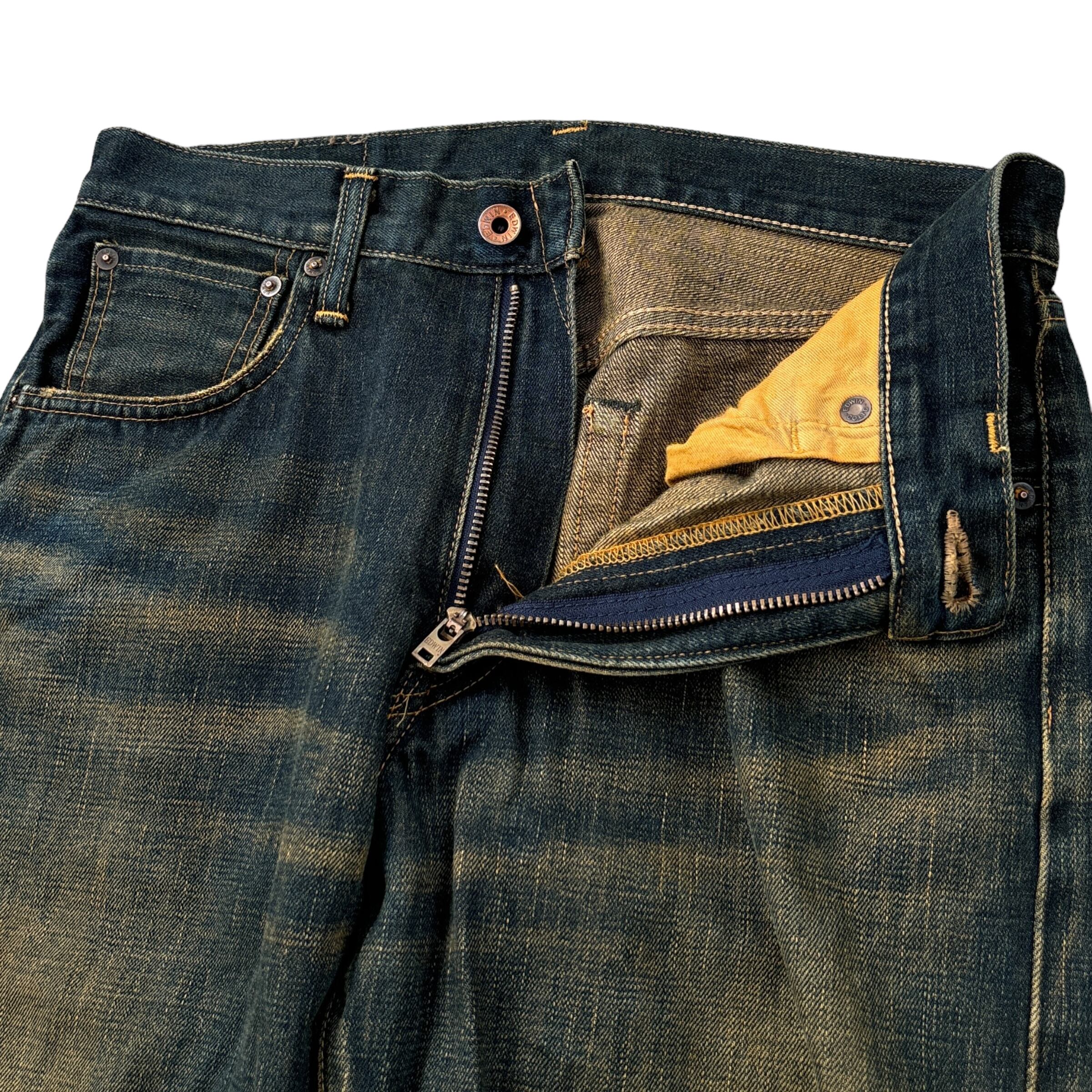 EDWIN 505X vintage style straight denim pants エドウィン ストレート デニムパンツ ヴィンテージ調 ユーズド加工 古着