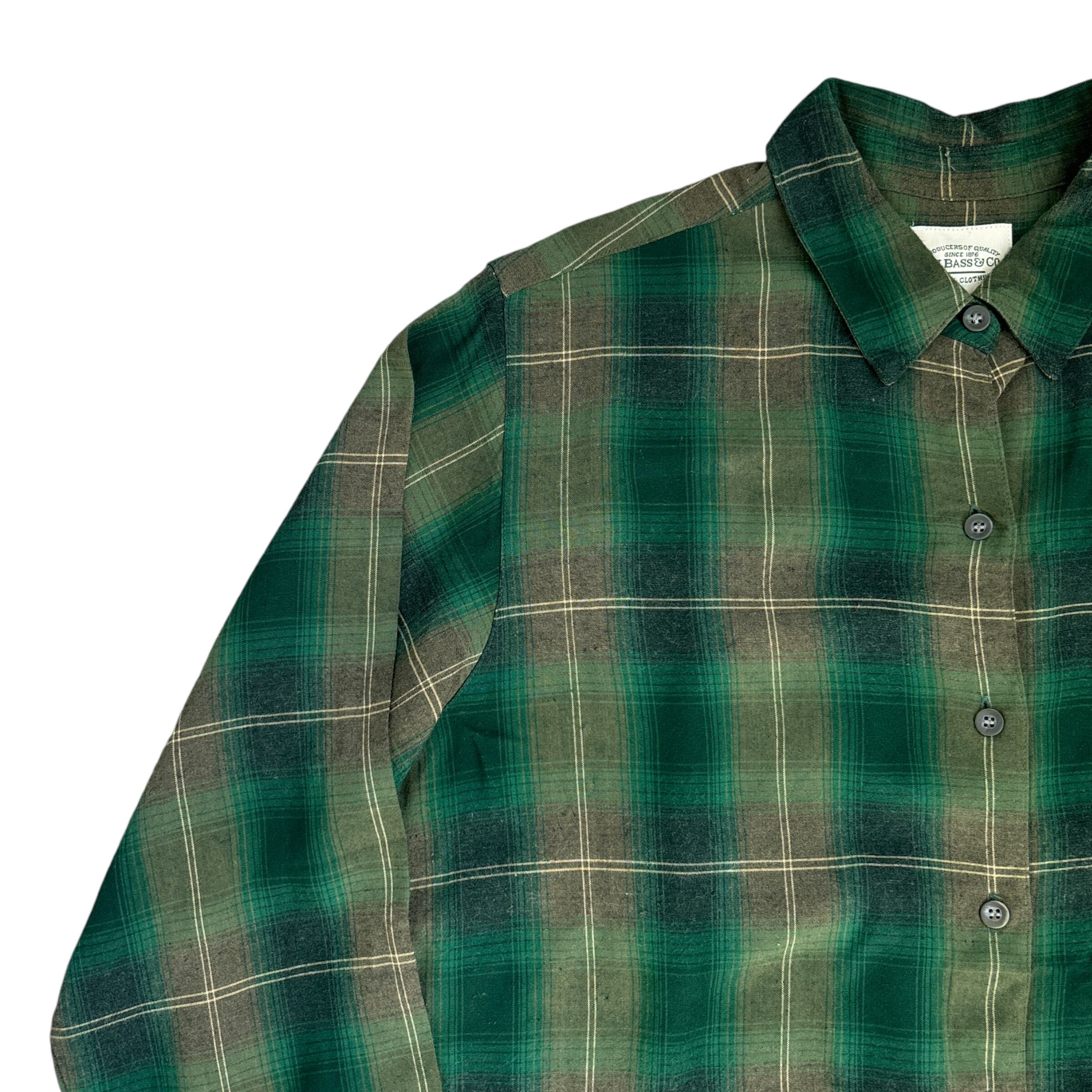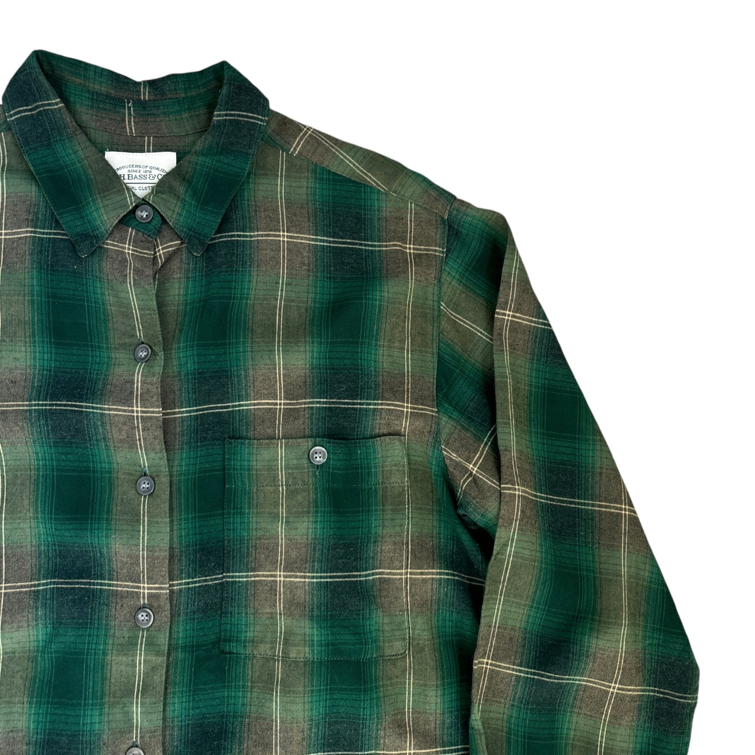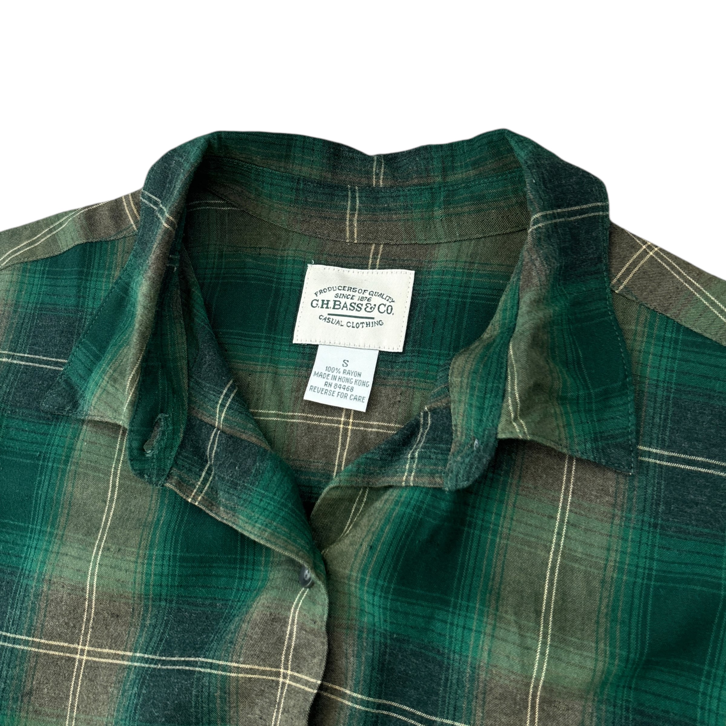 G.H.BASS ombre check pattern shirt RAYON 100% ジーエイチバス オンブレシャツ 長袖 グリーン 緑 古着 レーヨン100%