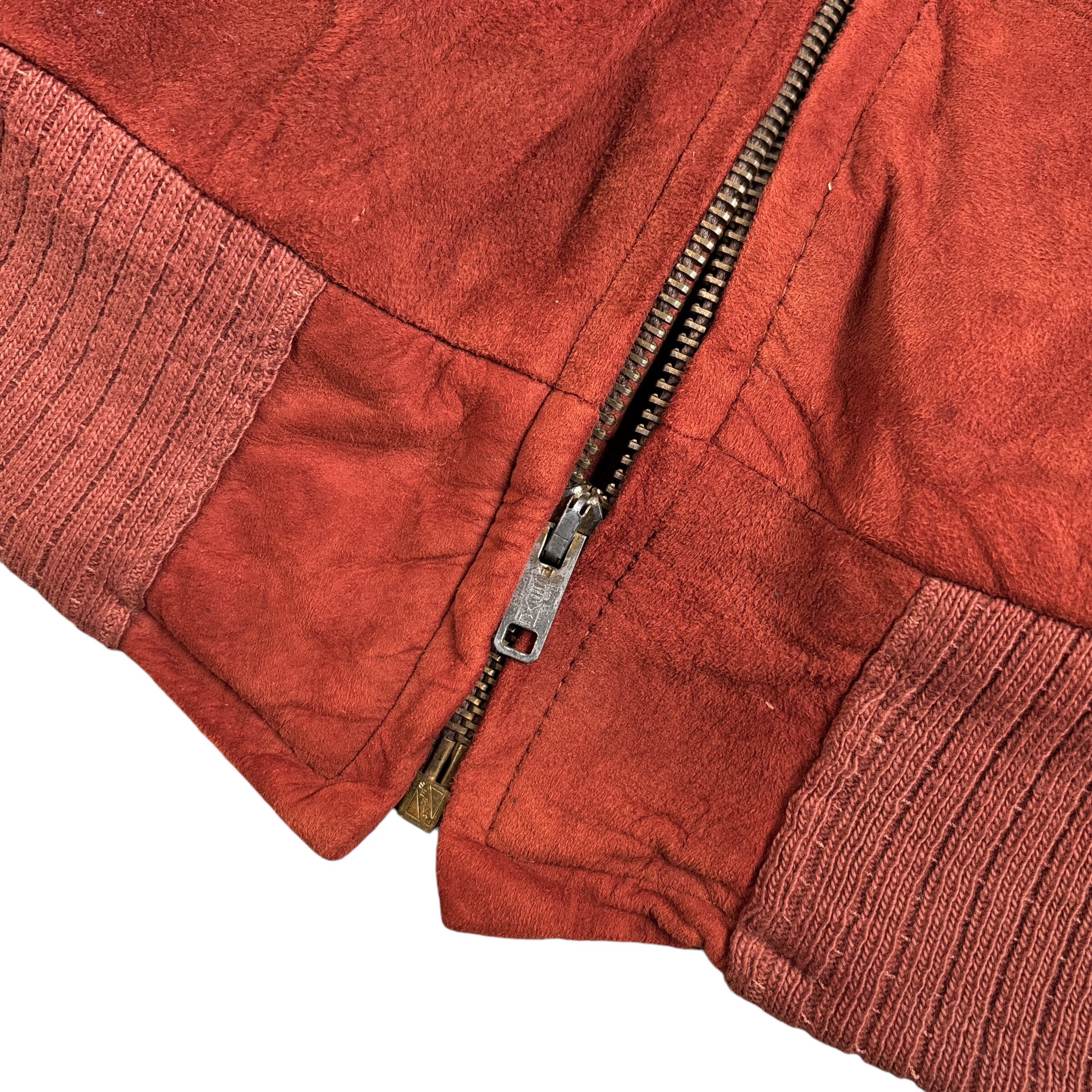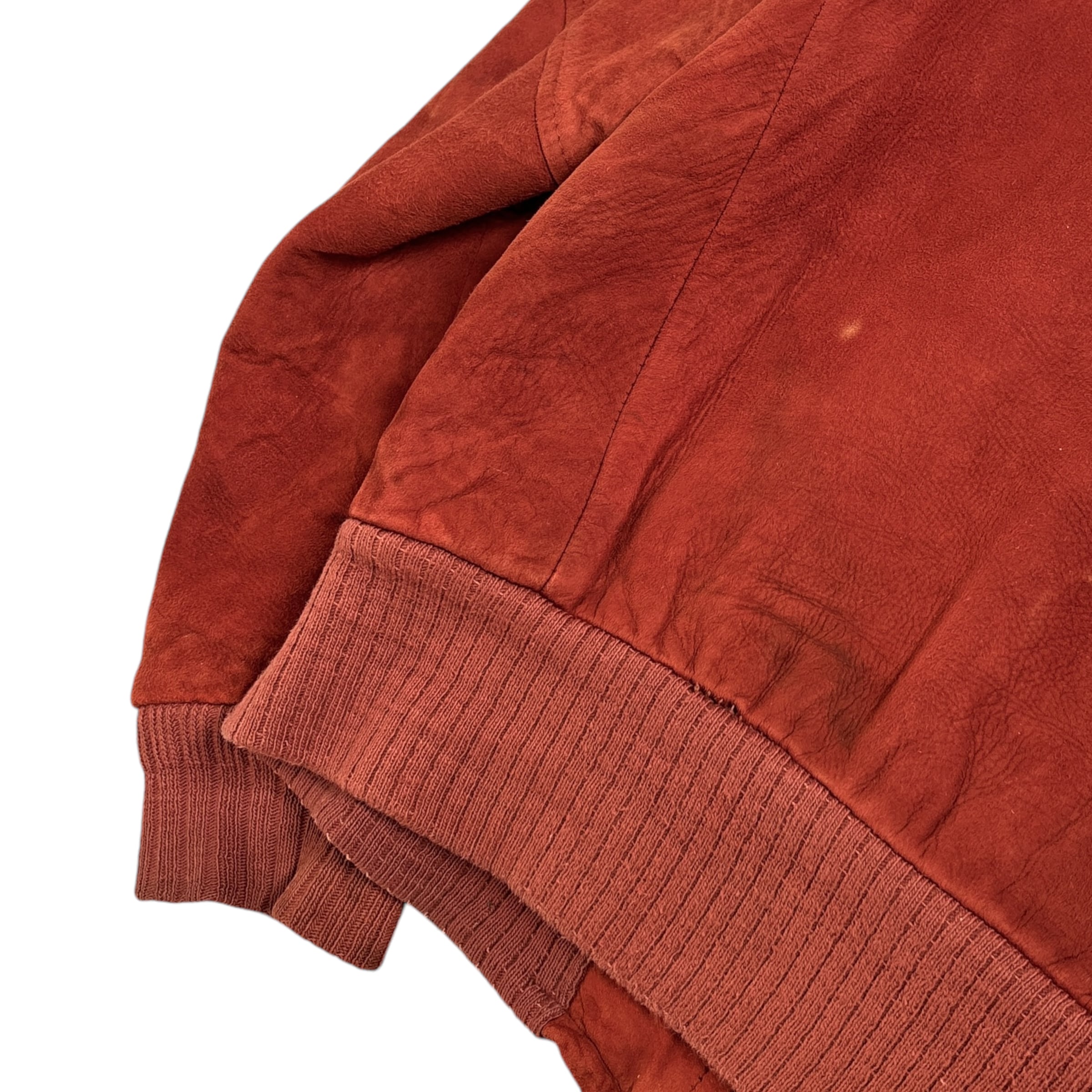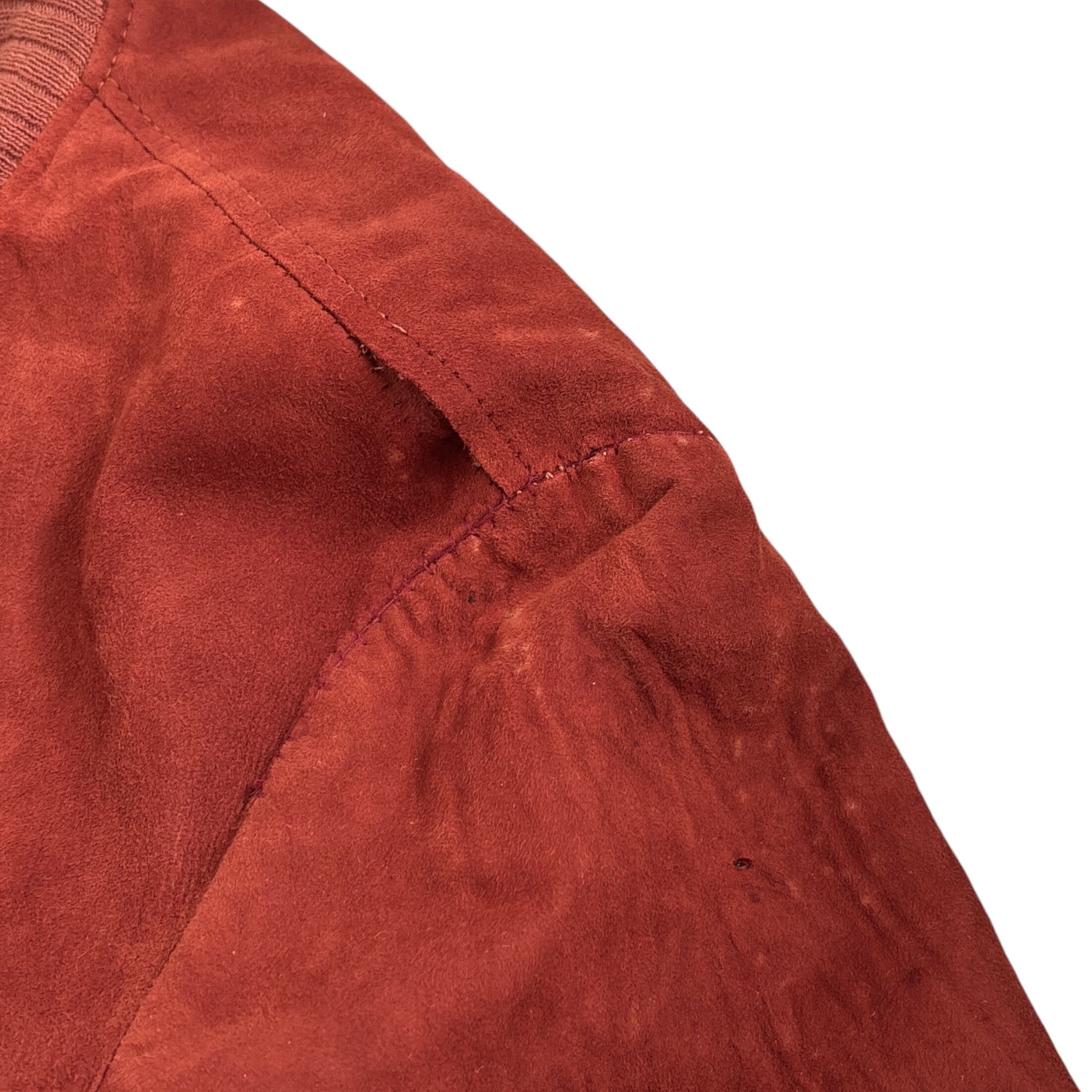 有名なデュポン社の特殊加工であるQUILON加工がなされた、MA-1スタイルのスウェードレザージャケットになります。