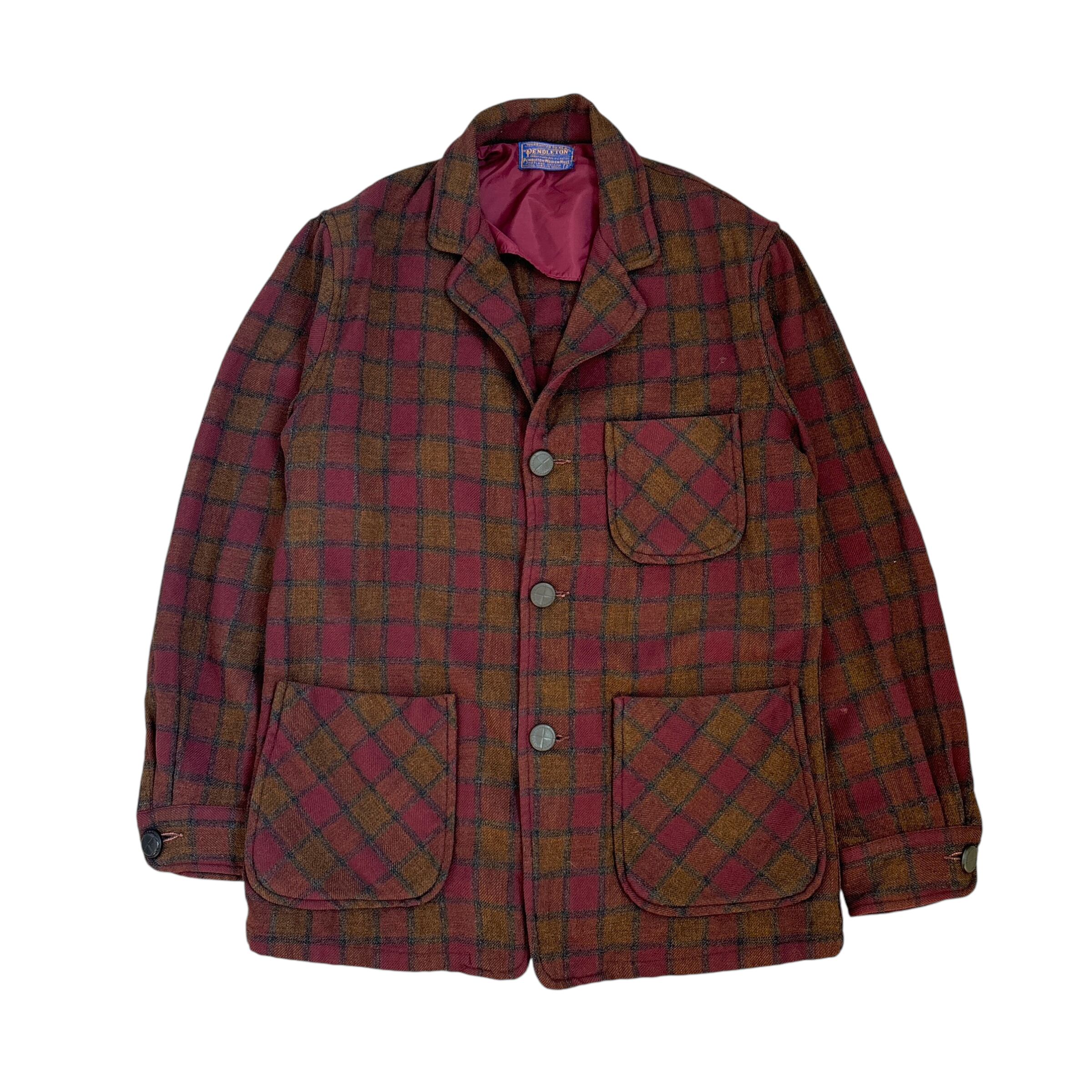 50s PENDLETON check pattern wool tailored jacket 50年代 ペンドルトン タータンチェック柄 ウール テーラードジャケット 古着 ヴィンテージ S ブラウン レッド 茶 赤