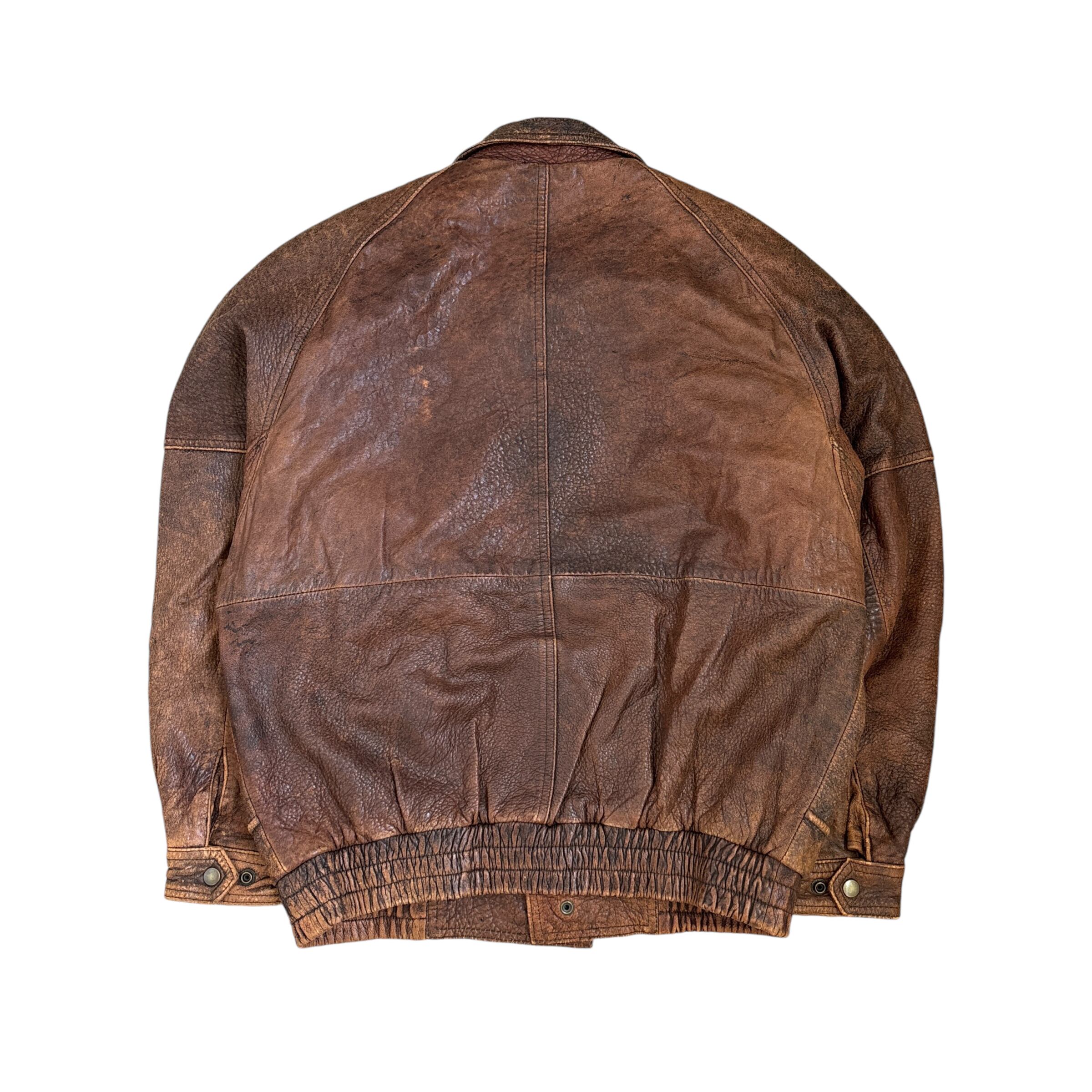 90s~ vintage style leather jacket flight jacket 90年代〜 ヴィンテージ調 レザージャケット フライトジャケット調 古着 ブラウン 茶 短丈