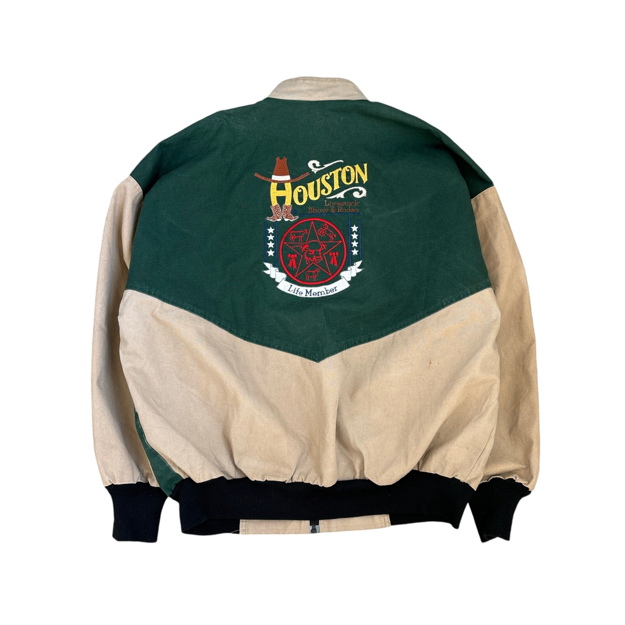 80s~90s BEE-WILD "HOUSTON" zip up jacket 80年代~90年代 ビーワイルド ヒューストン 刺繍 ジップアップジャケット 古着 L ベージュ カーキ 緑
