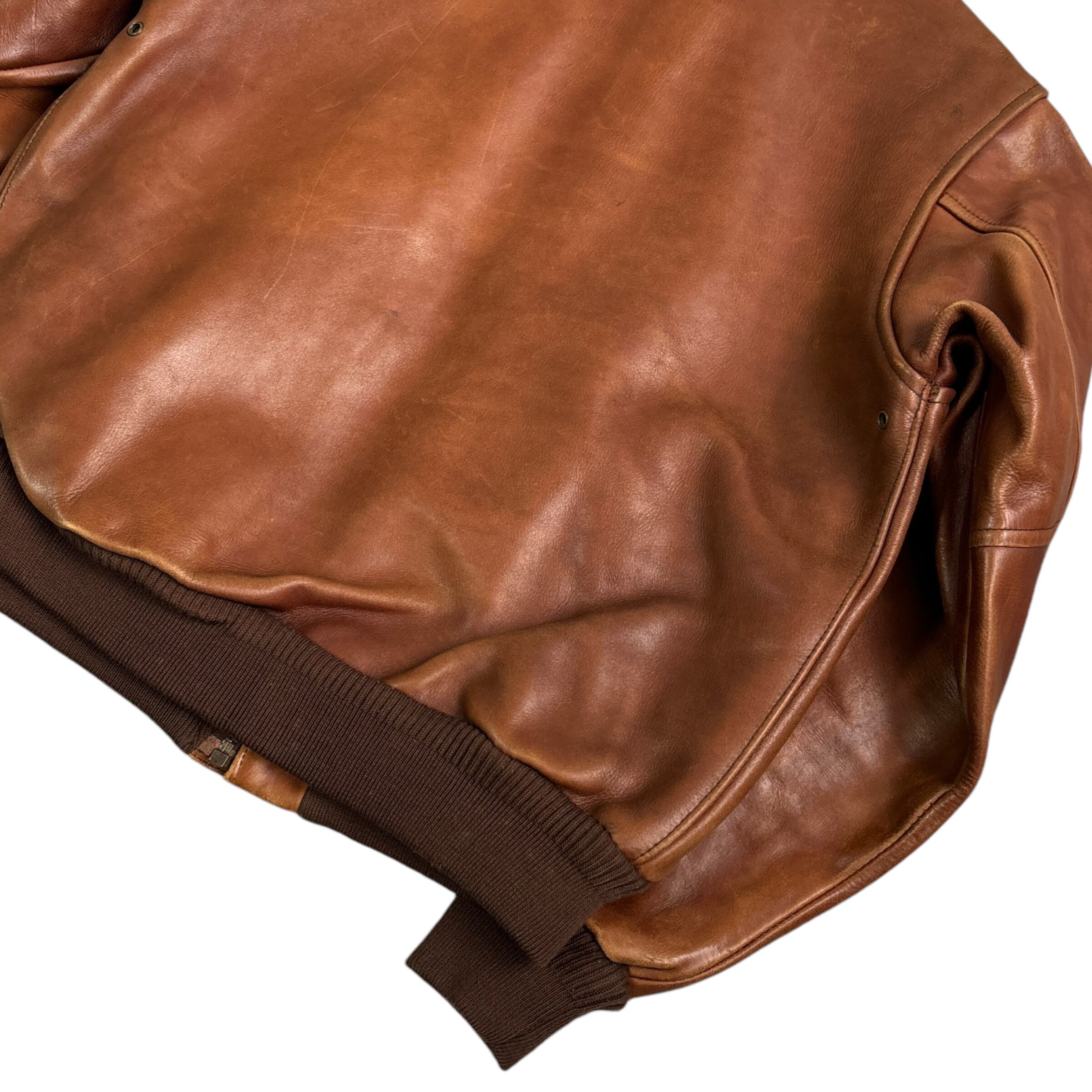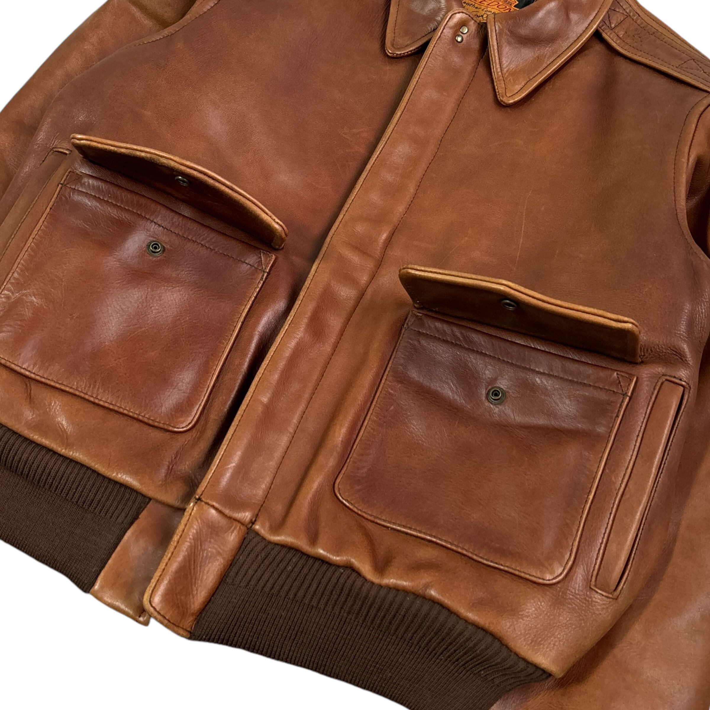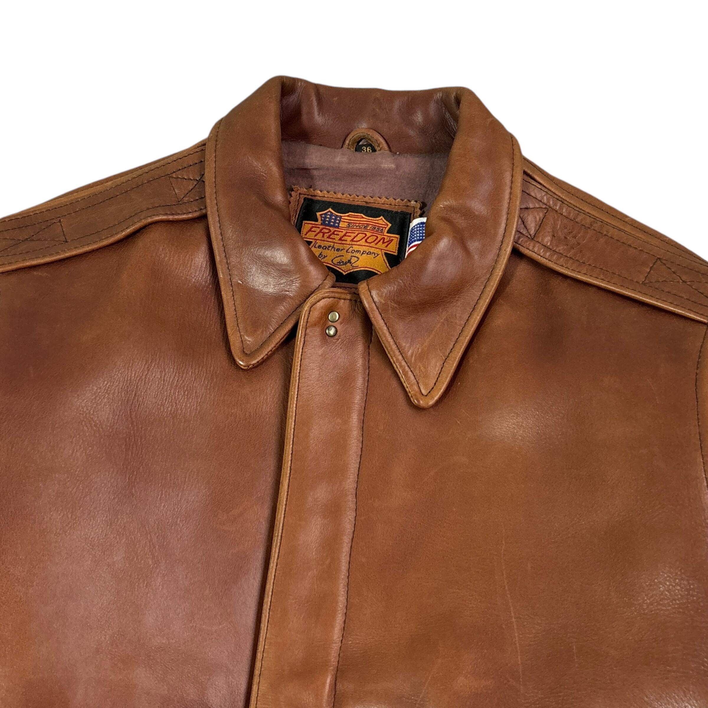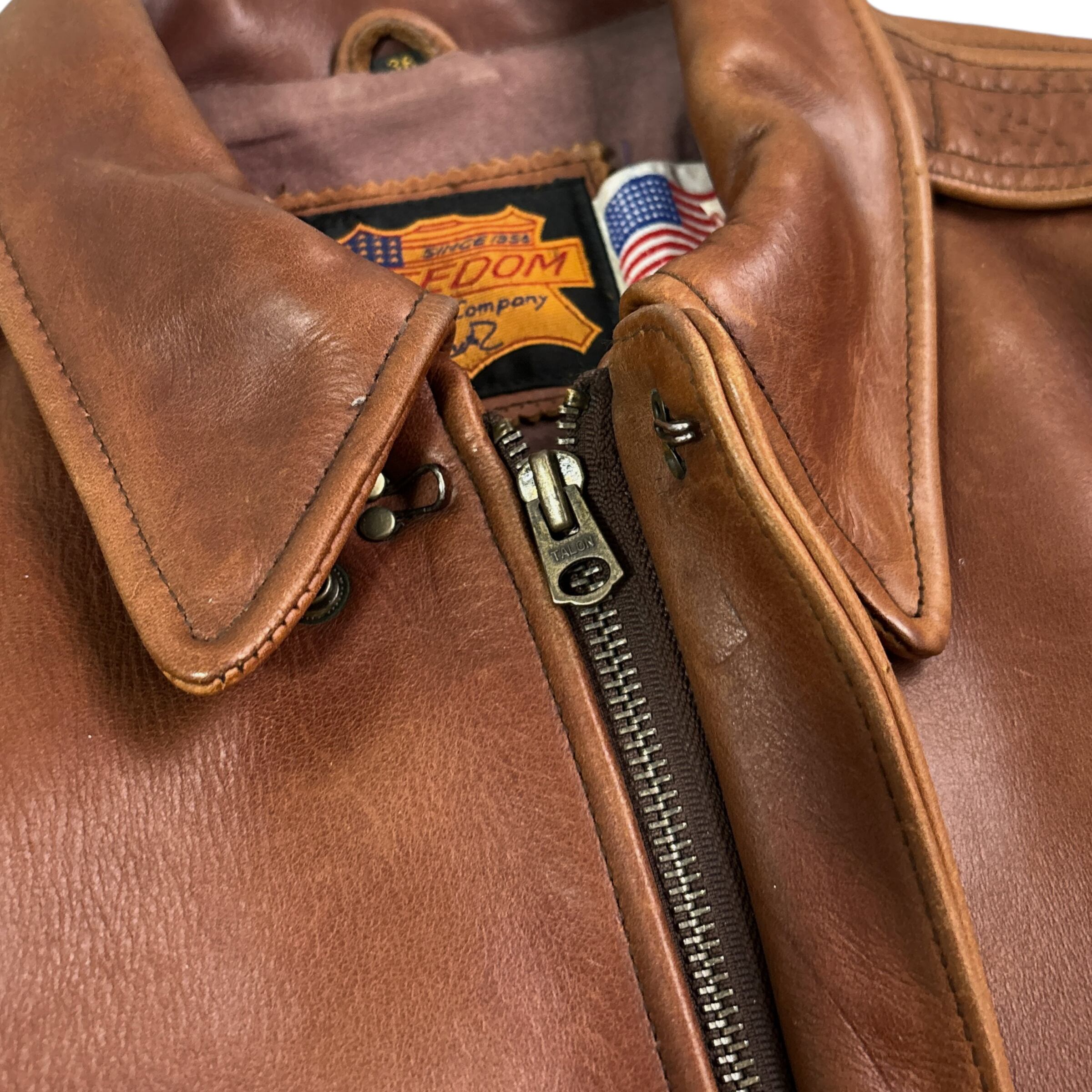 90s~ FREEDOM A-2 Type Flight Jacket Cowhide Leather Jacket 90年代 A-2型 フライトジャケット レザージャケット 古着 ブラウン 茶
