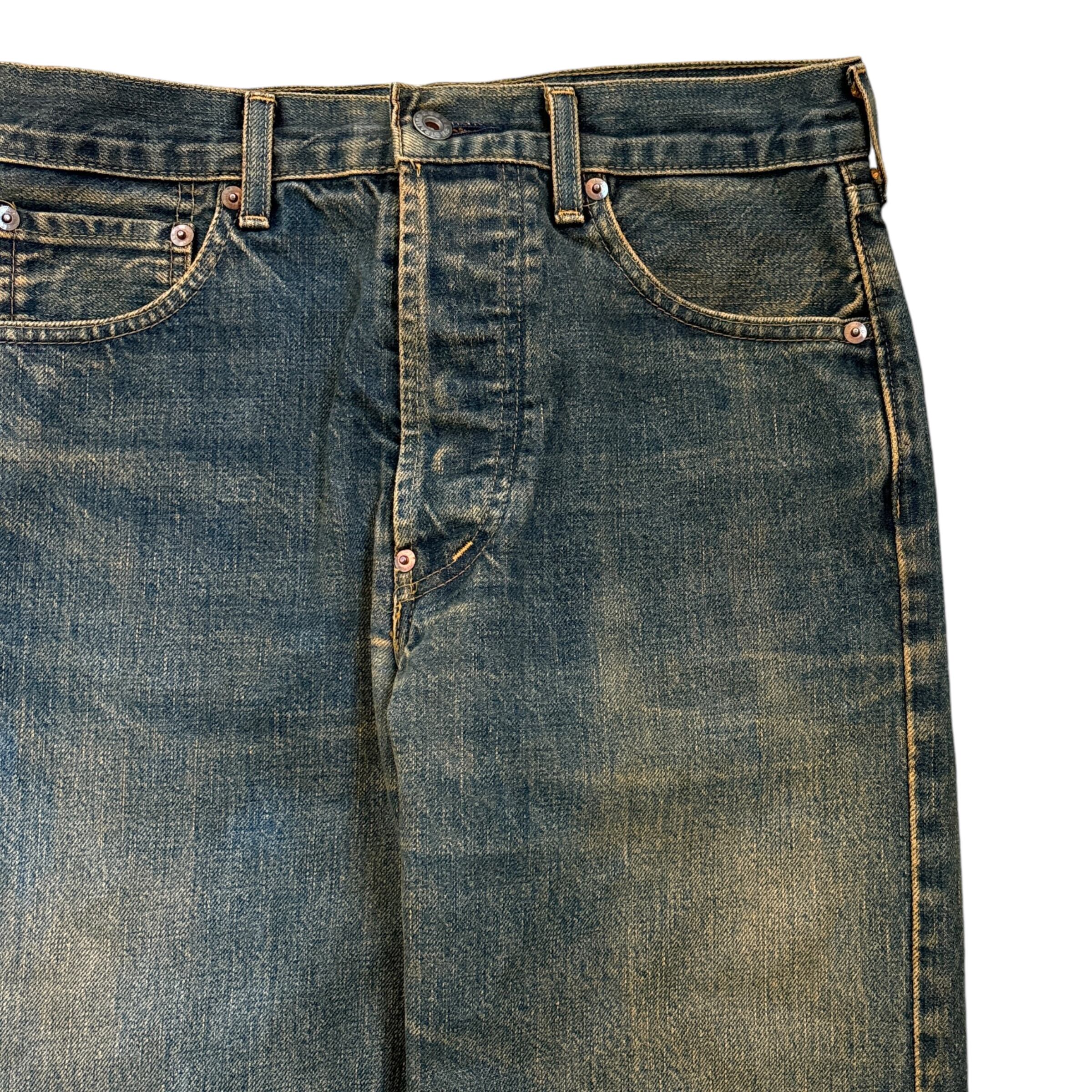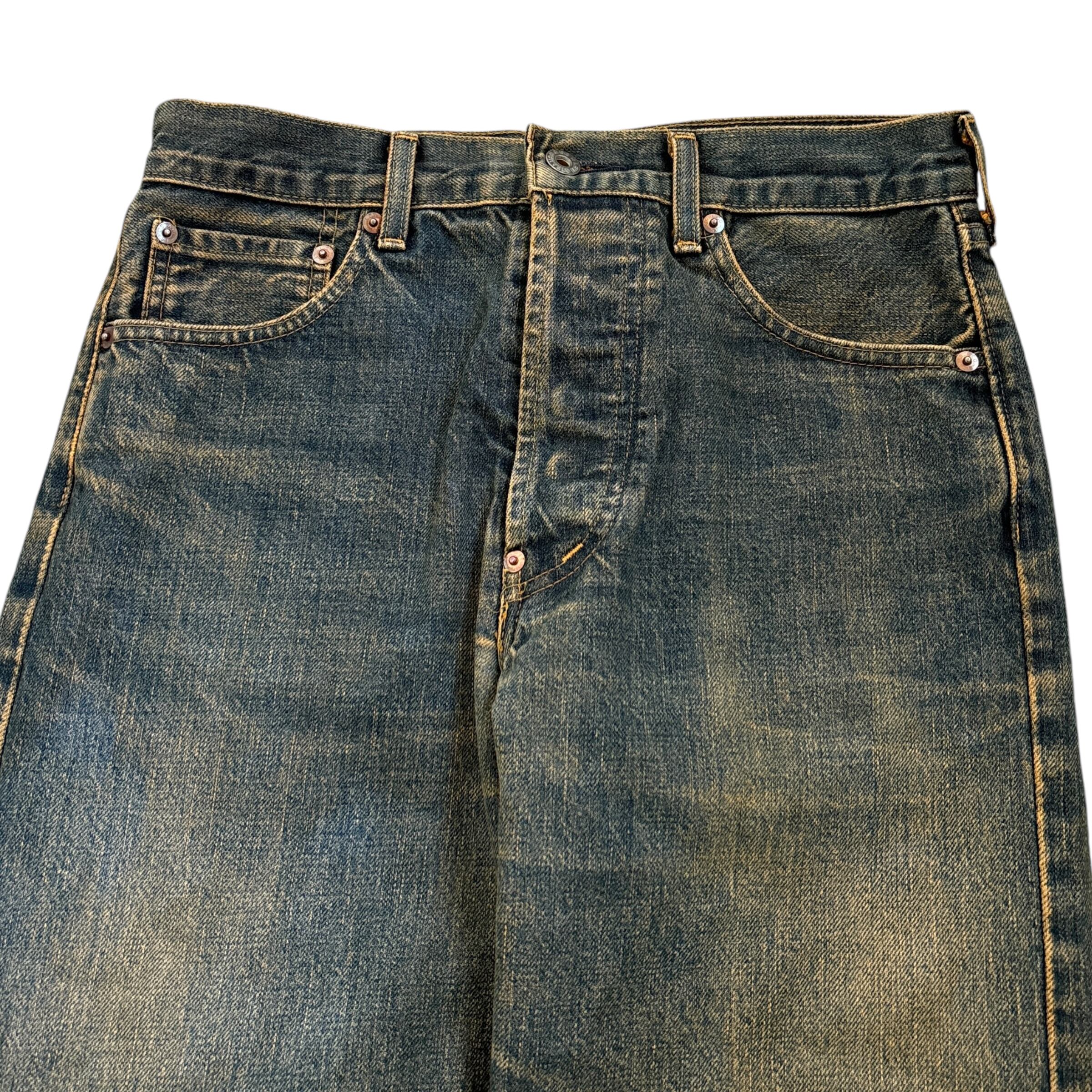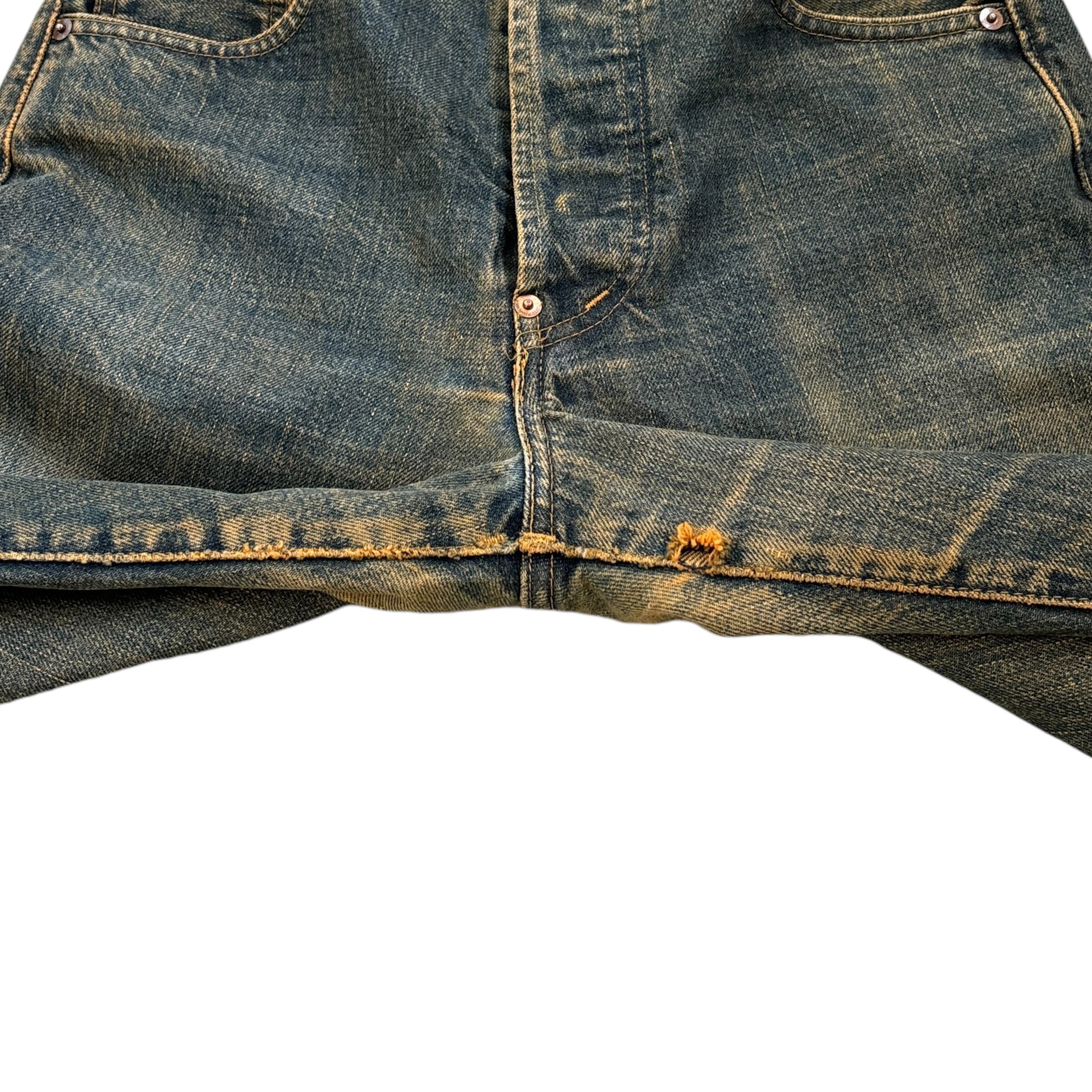 90s Levi's 701XX vintage style straight denim pants 90年代 リーバイス ヴィンテージ調 ストレートデニムパンツ 古着 復刻 ユーズド加工