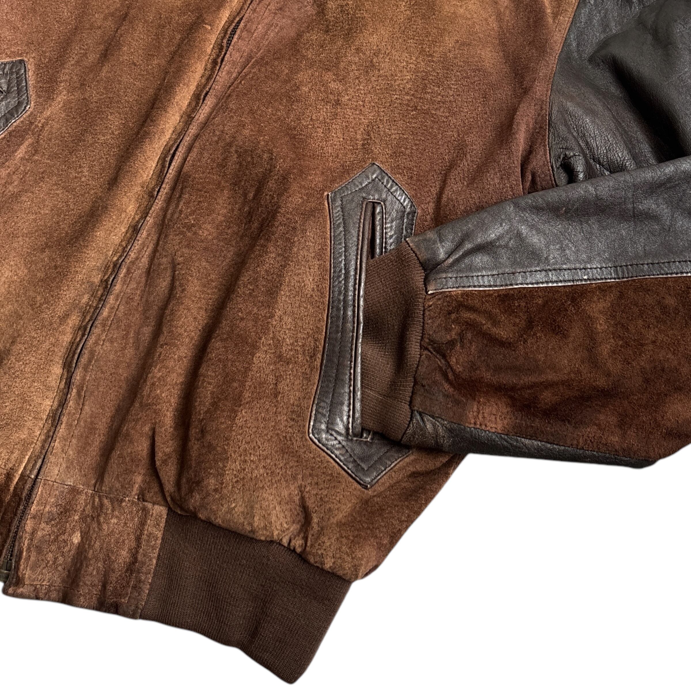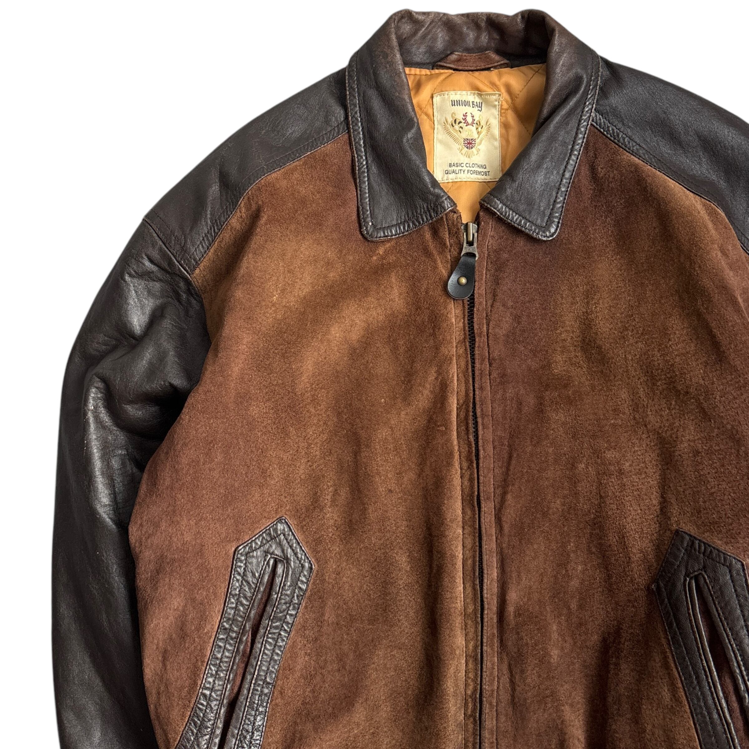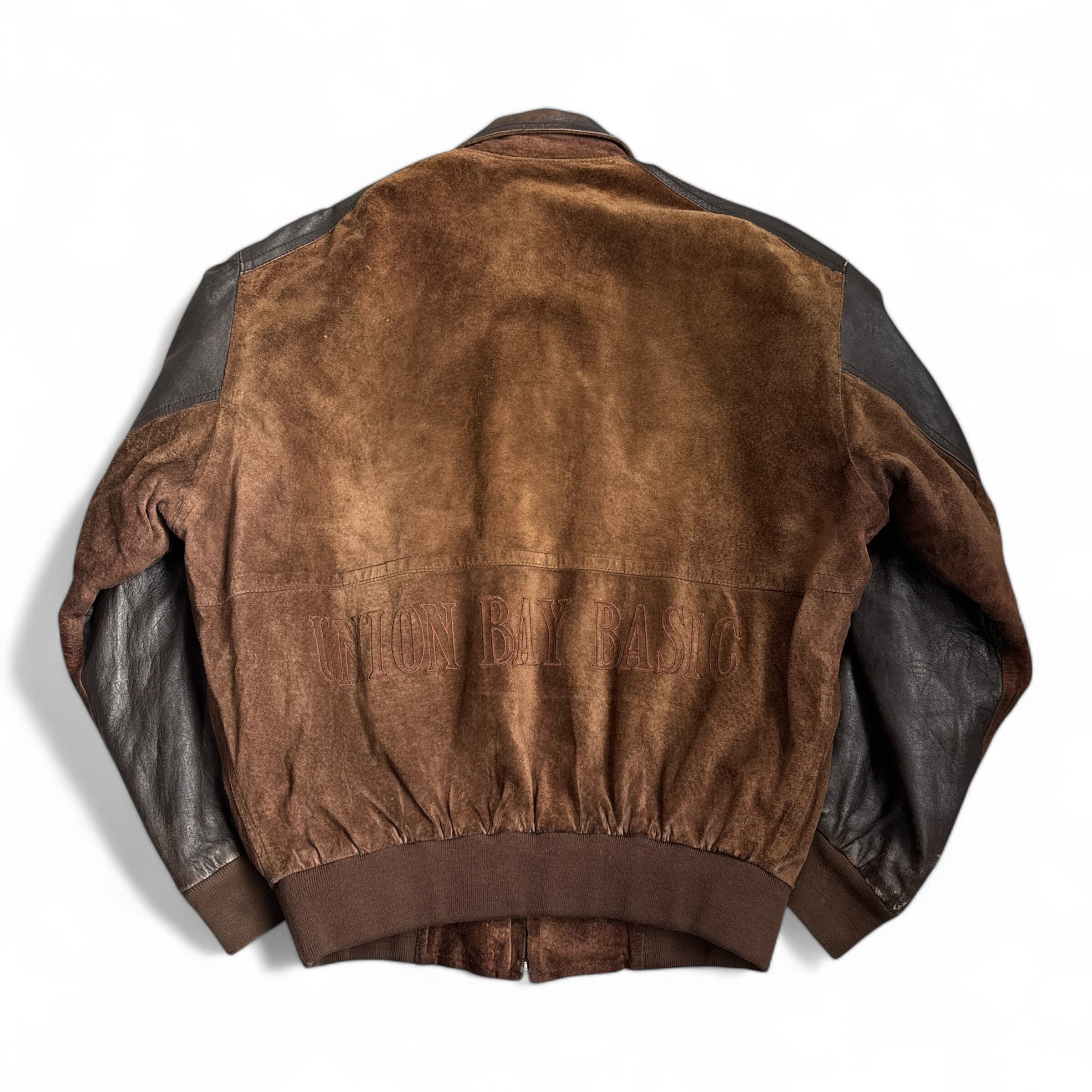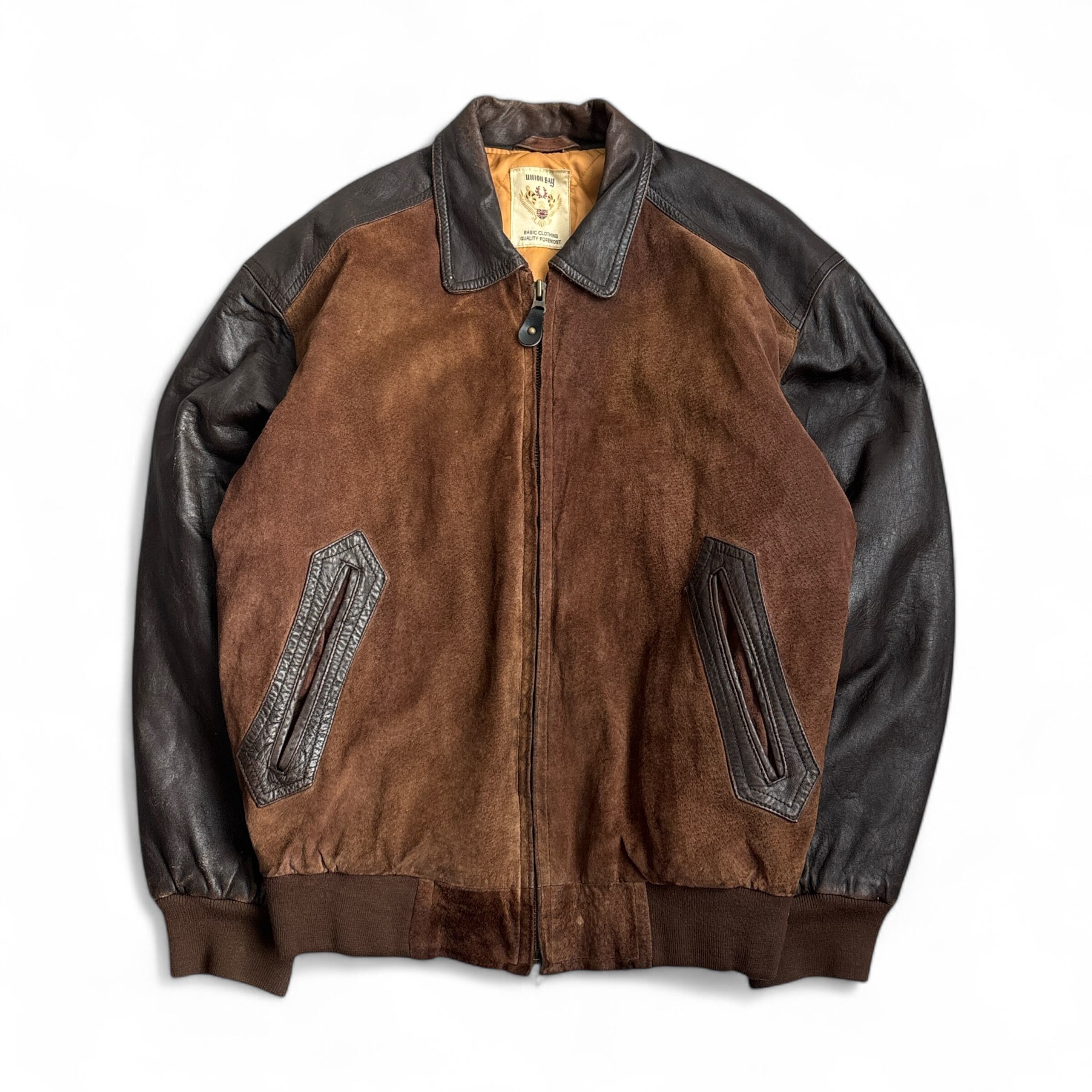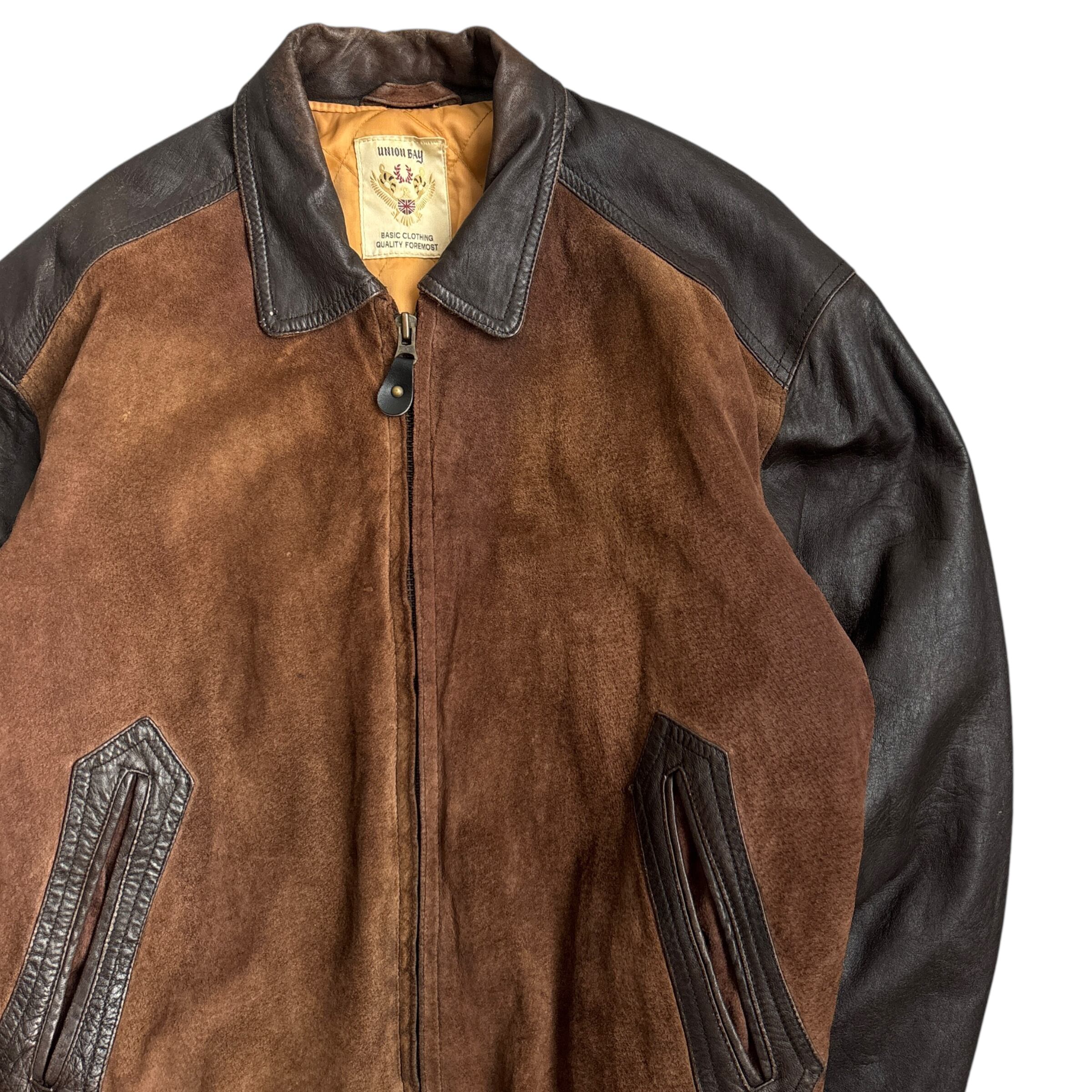 90s~ "union Bay" Suede Leather Jacket 90年代〜 ユニオンベイ スウェード レザージャケット 短丈 古着 レザー切り返し 襟付き ブラウン 茶