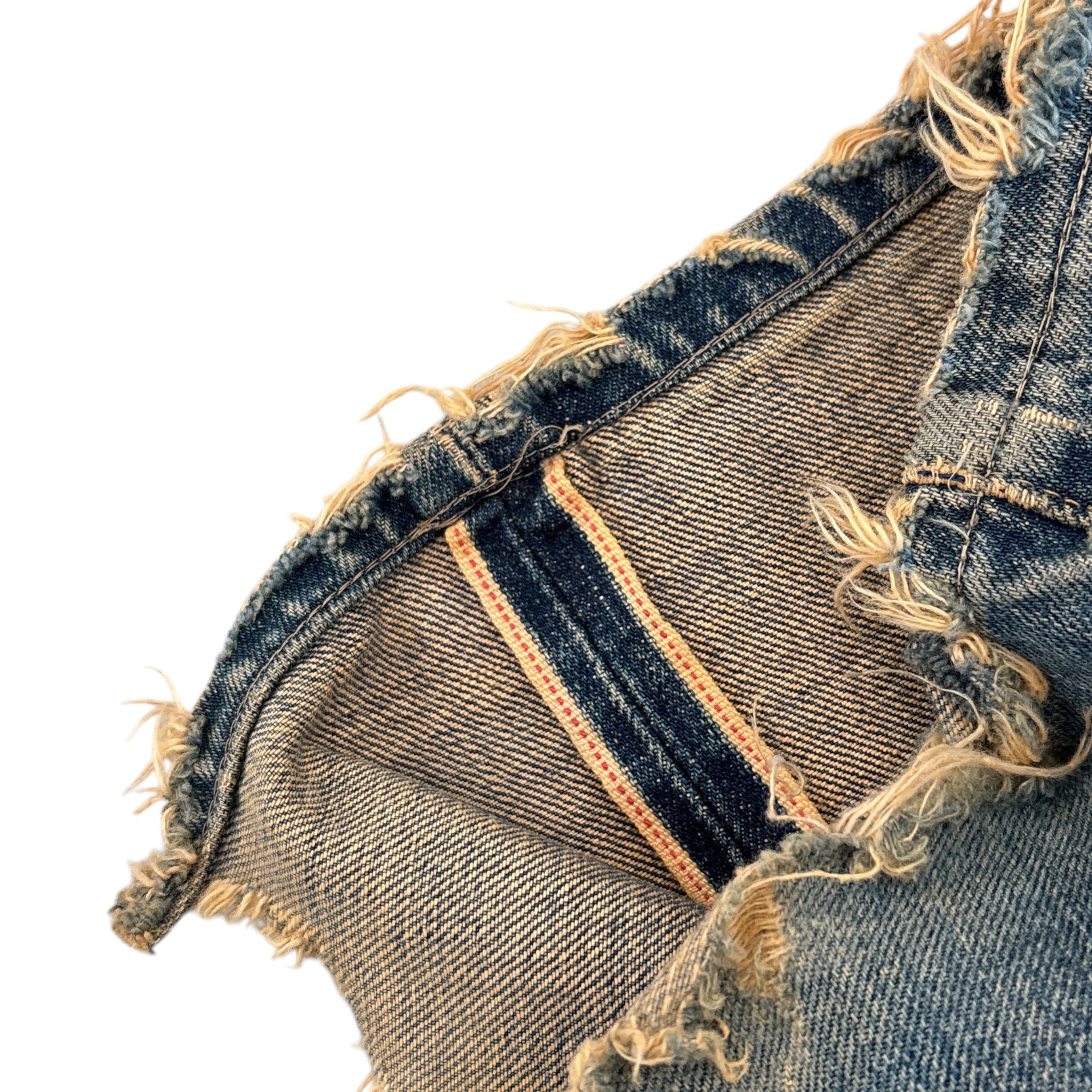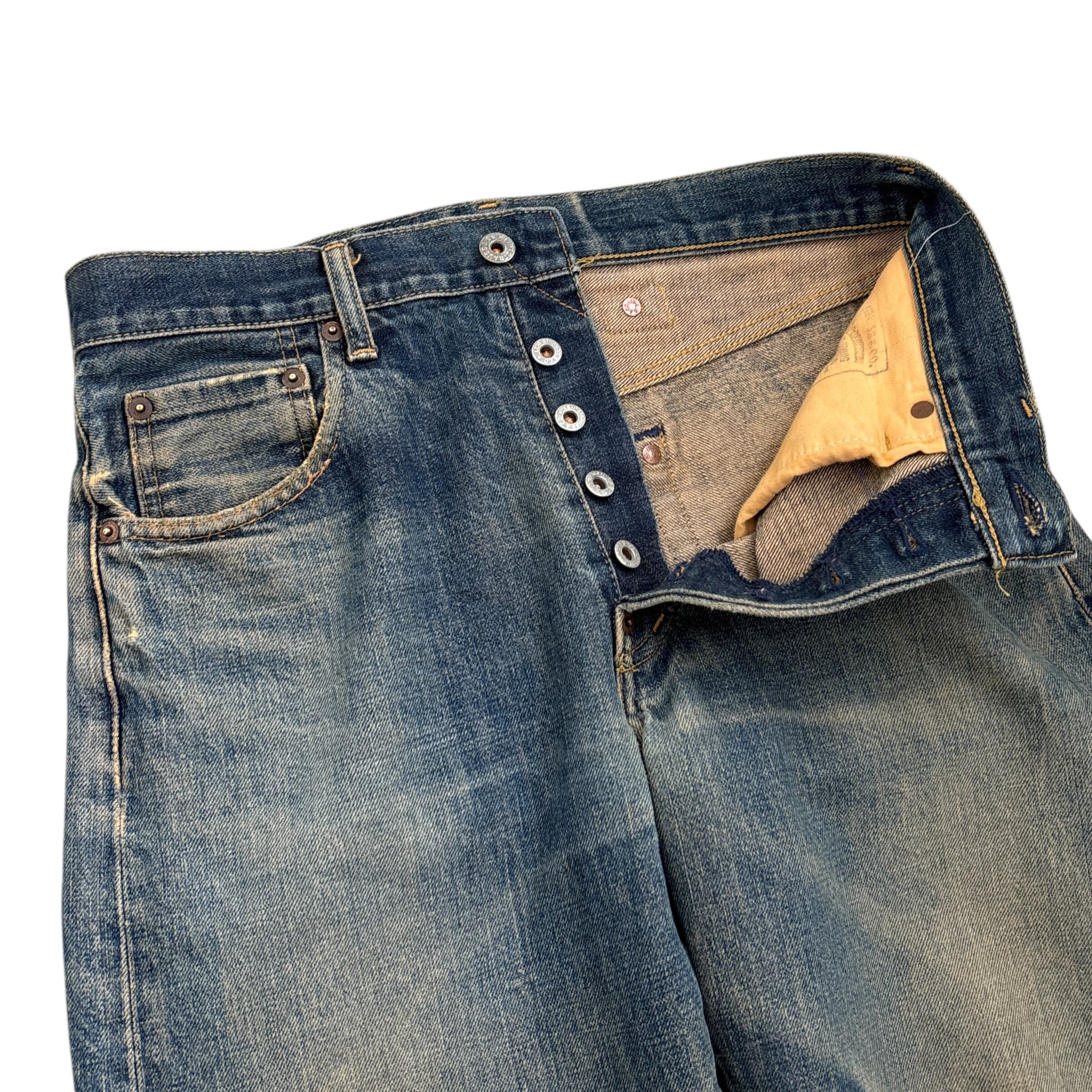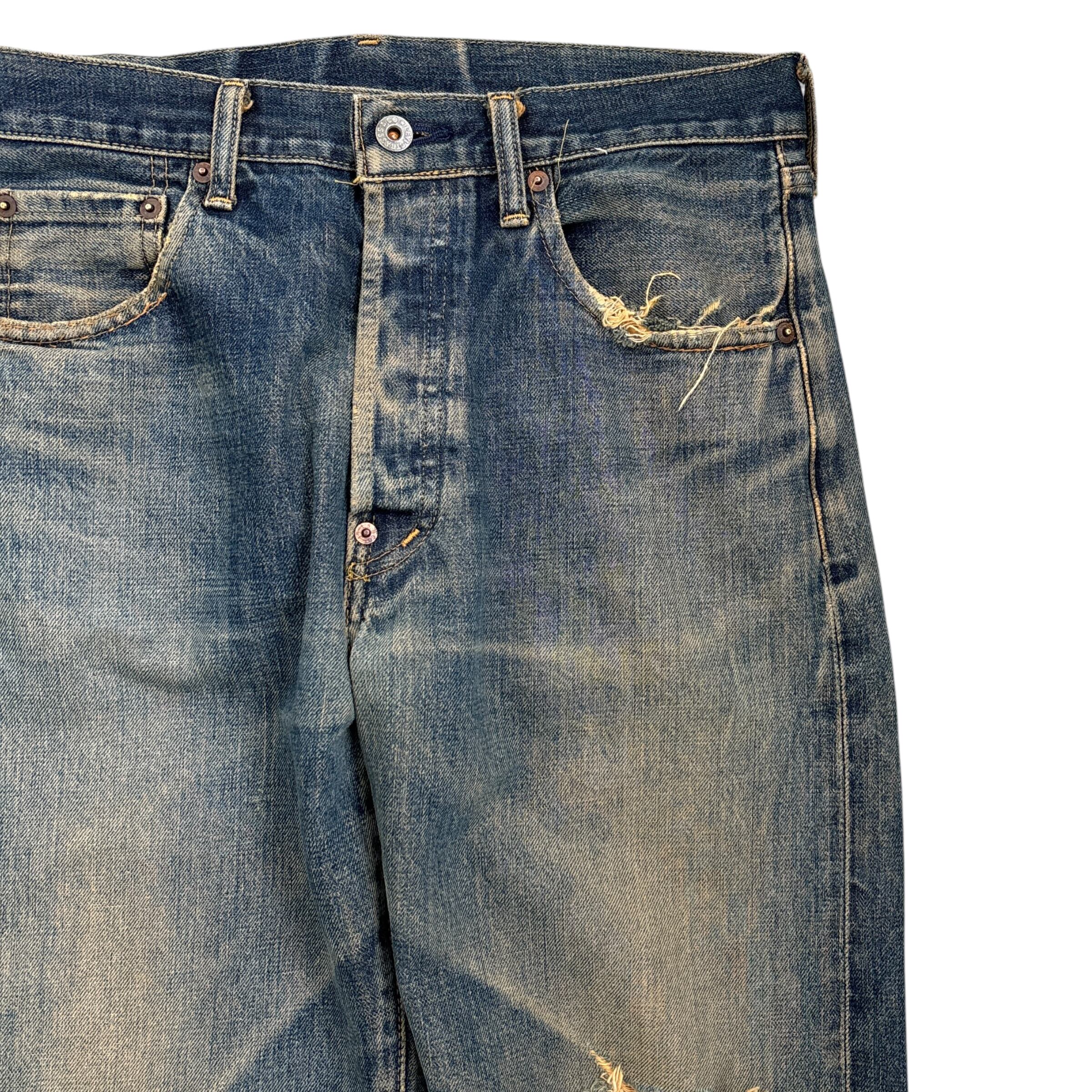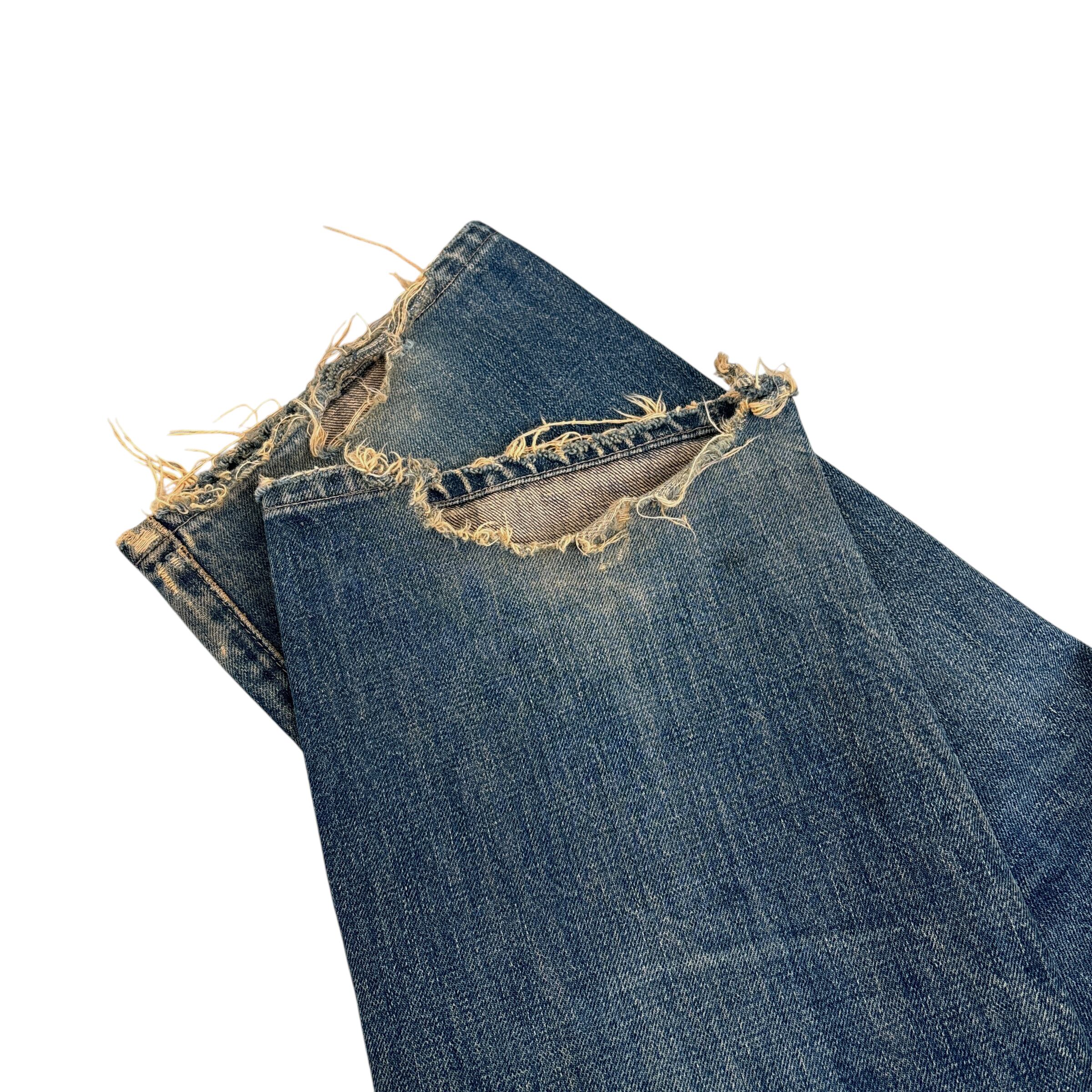 フェードがかった色味や色落ち、クラッシュ感のあるダメージ、太めのストレートシルエットが非常に魅力的な個体で、惹かれる方も多いと思います!