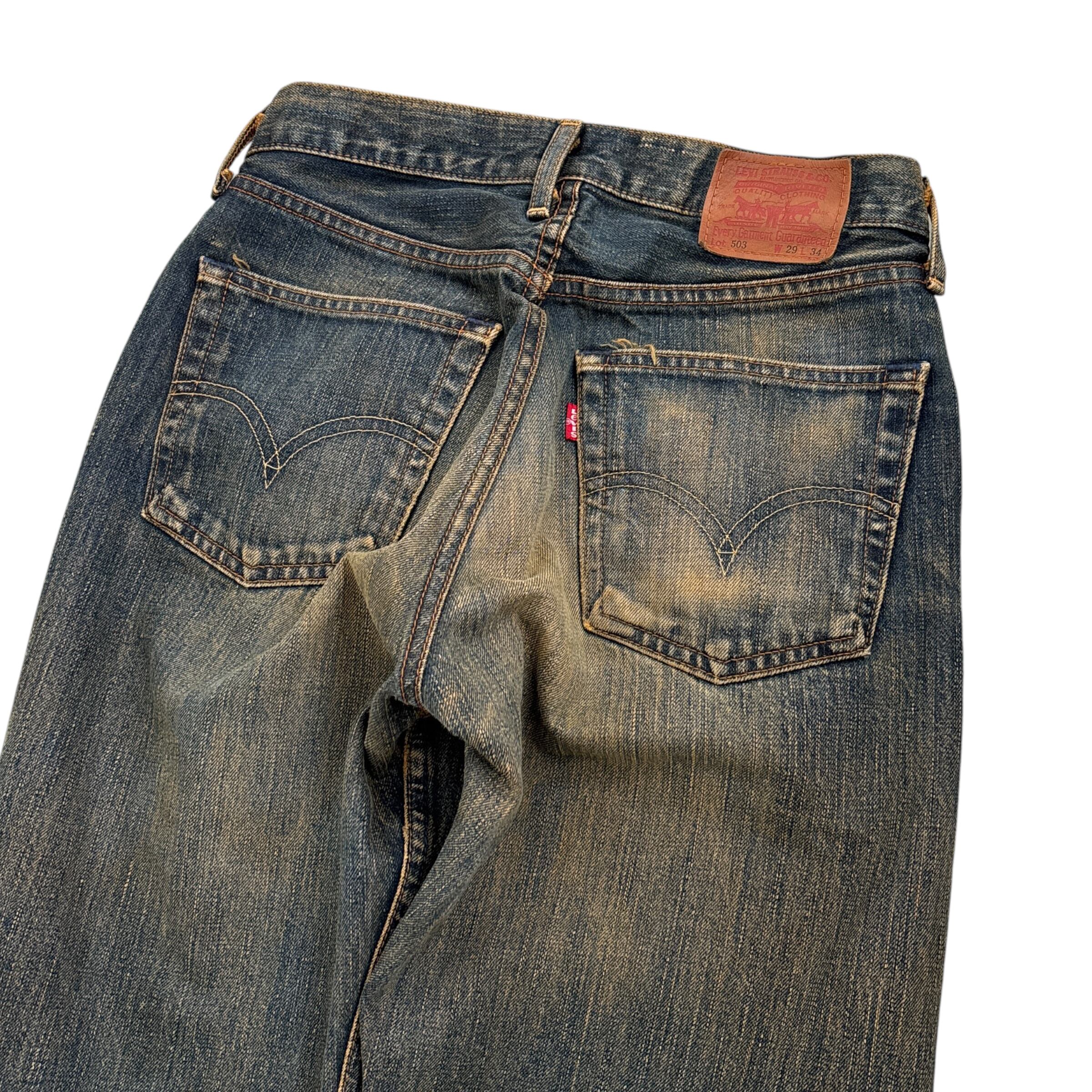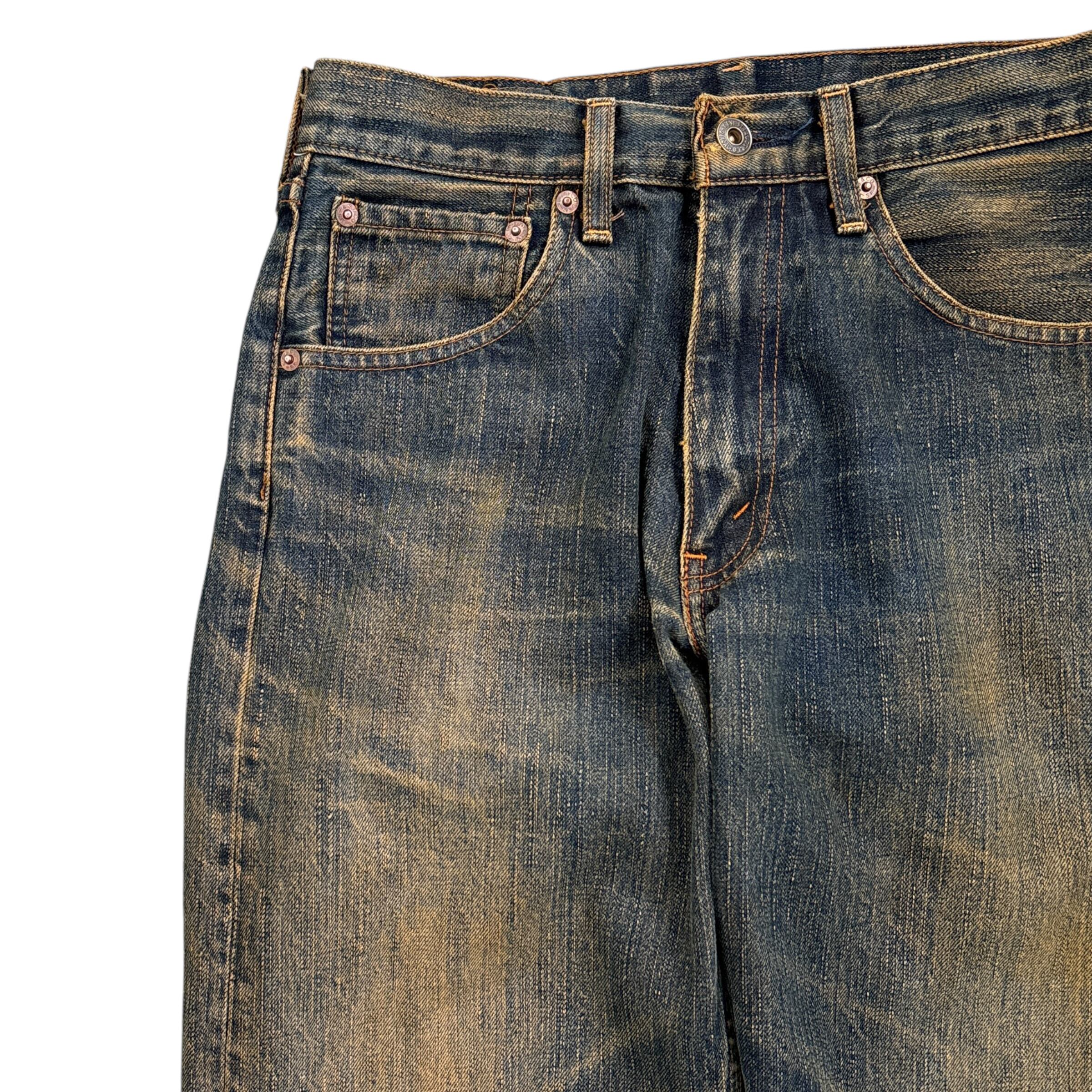 Levi's 503 Vintage Style Straight Denim Pants リーバイス ヴィンテージ調 ワイド ストレートデニムパンツ 古着 ヒゲ ユーズド加工