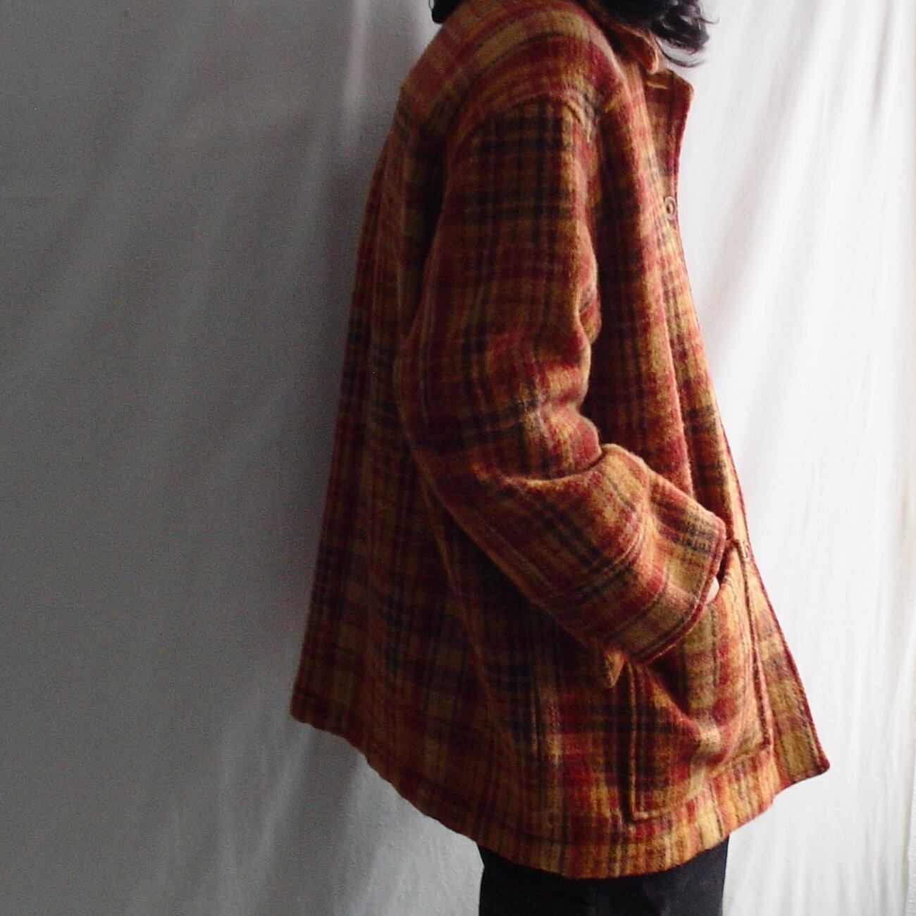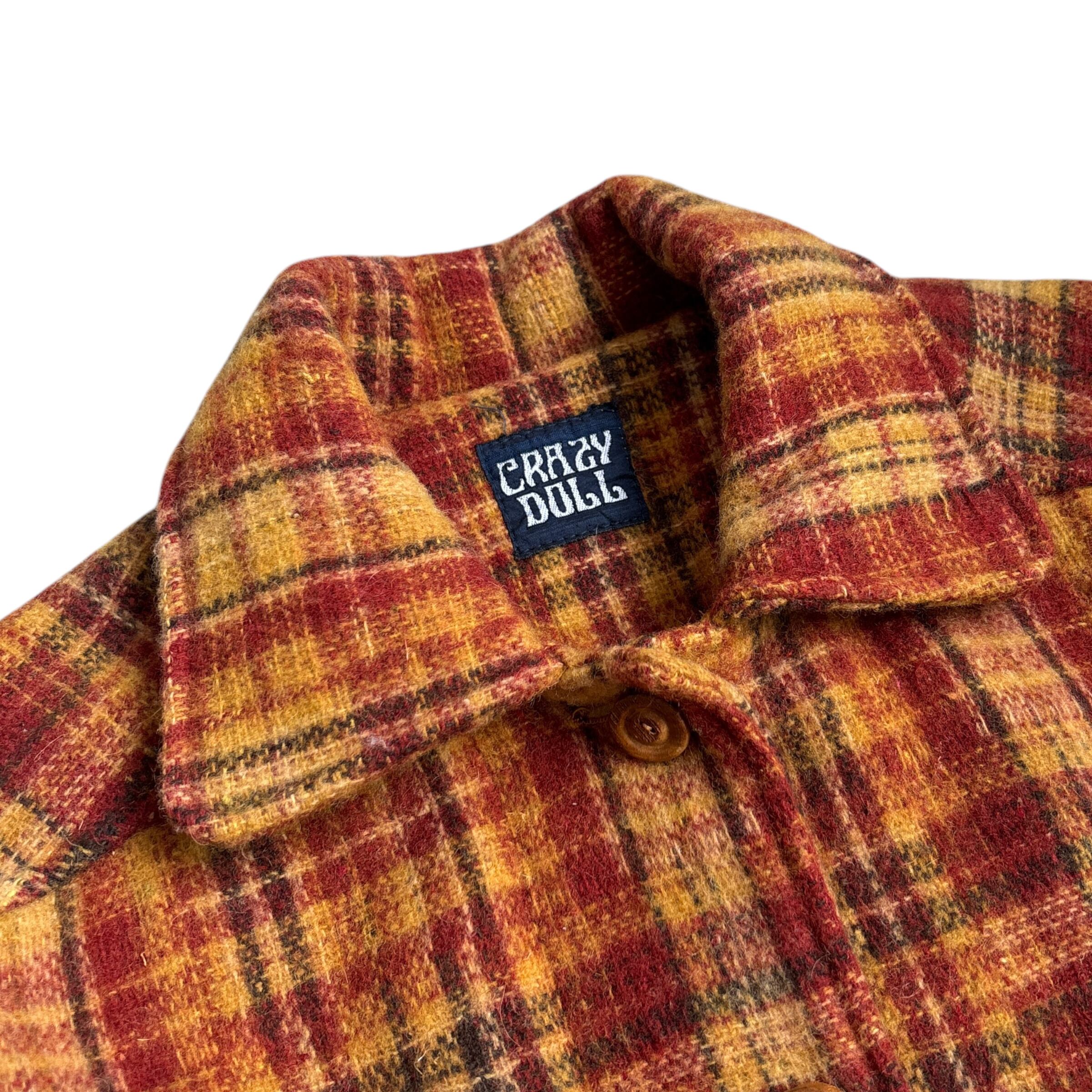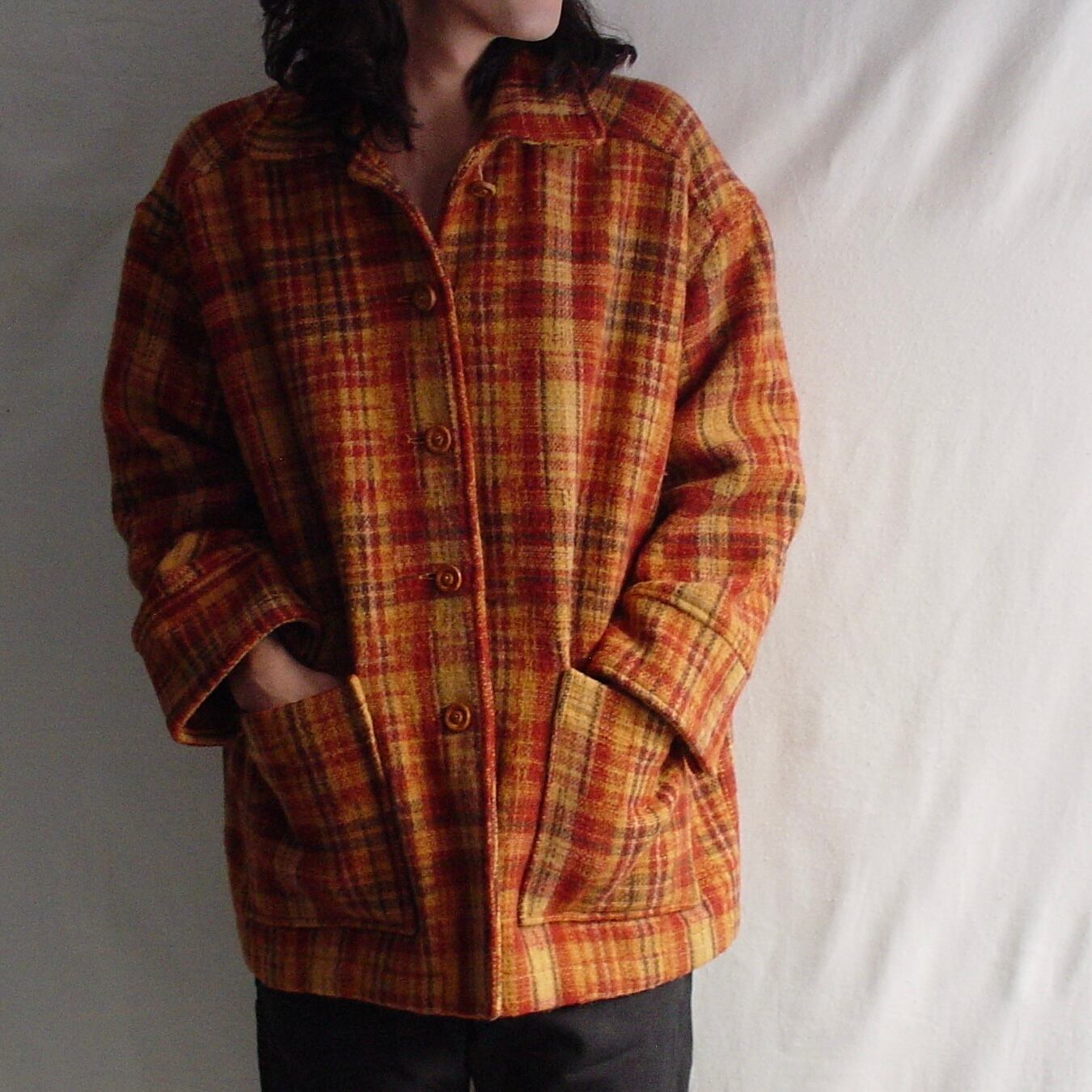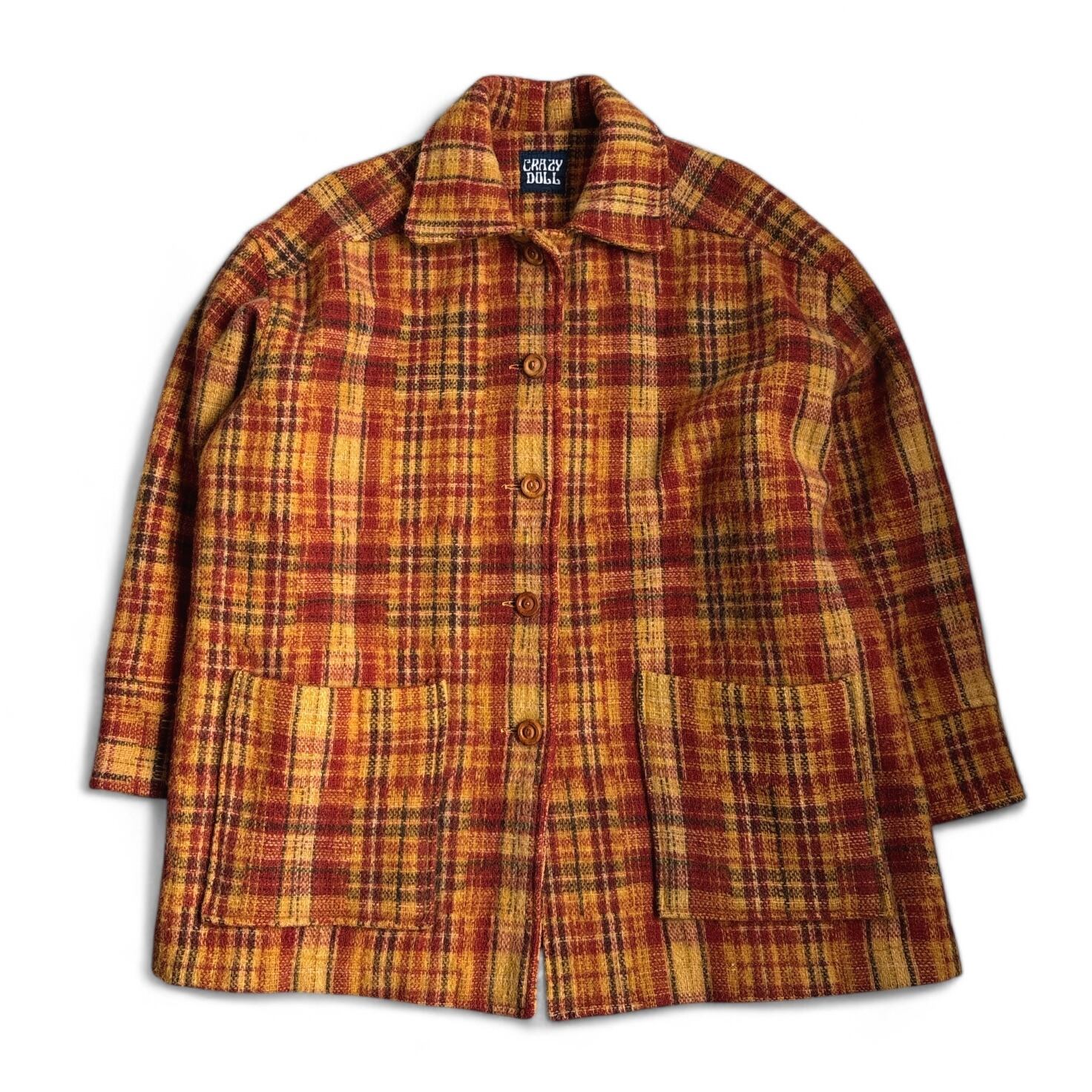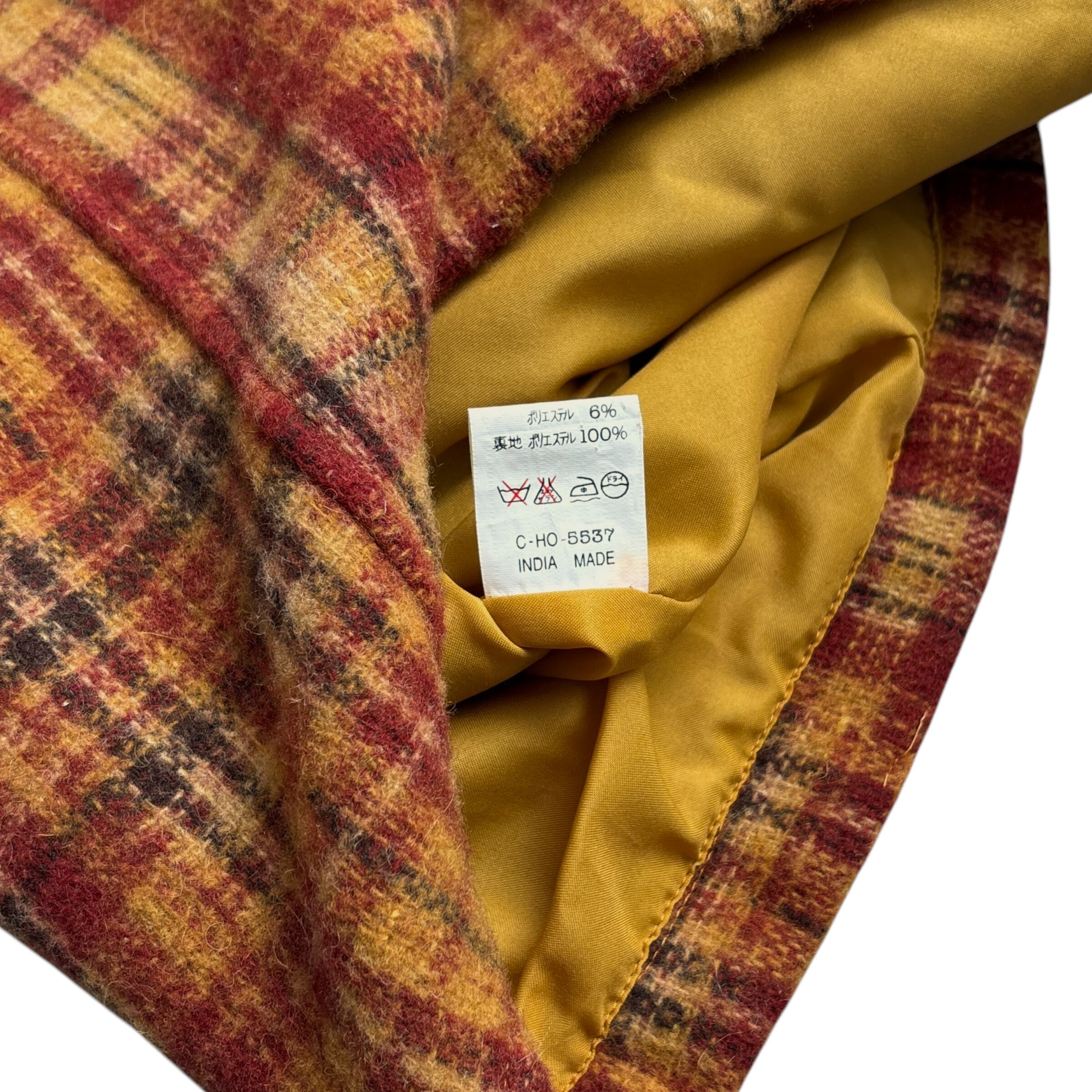 90s~ CRAZY DOLL Tartan Check Pattern Wool Blend Coat Jacket 90年代〜 クレージードール タータンチェック柄 ウールコート ジャケット 古着 ブラウン 茶 オレンジ
