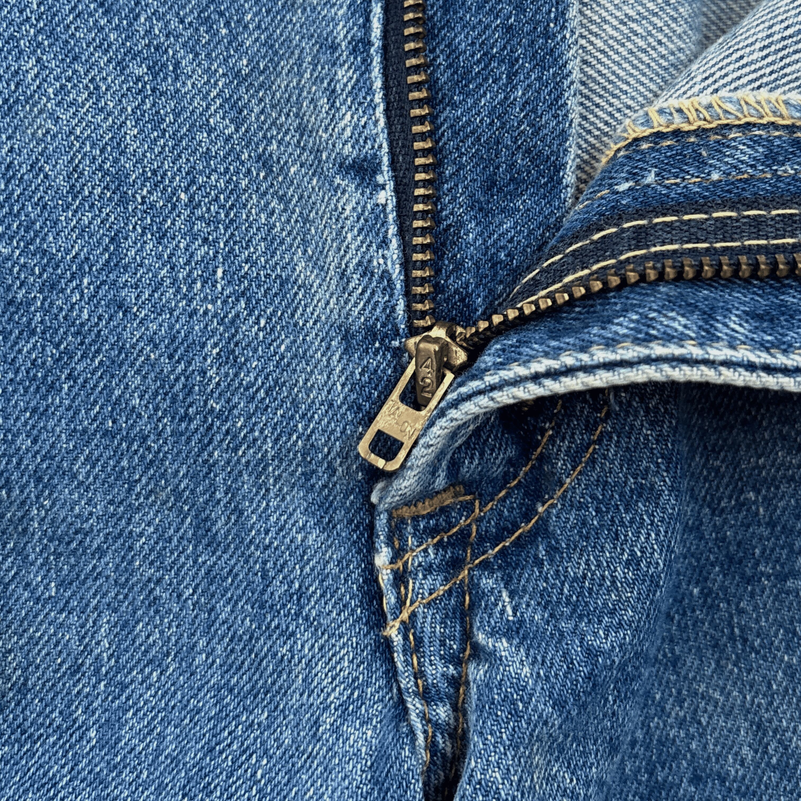 オレンジタブビッグE、オリジナルレングス、ボタン裏無刻印、42TALONジッパー、スレキスタンプの個体になります。