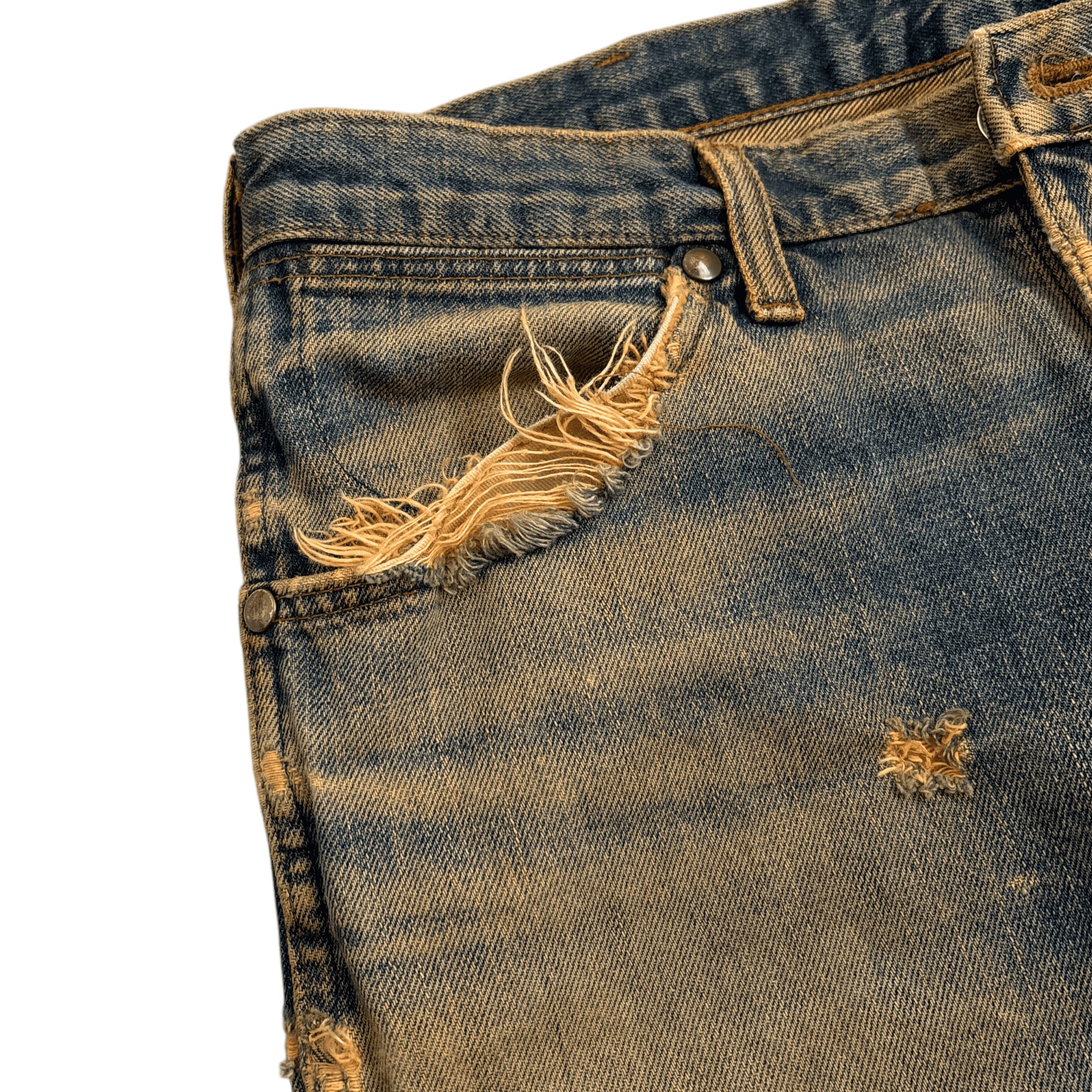 Wrangler Faded Wide Flare Denim Pants ラングラー ワイドデニムパンツ フレアパンツ 古着 クラッシュデニム