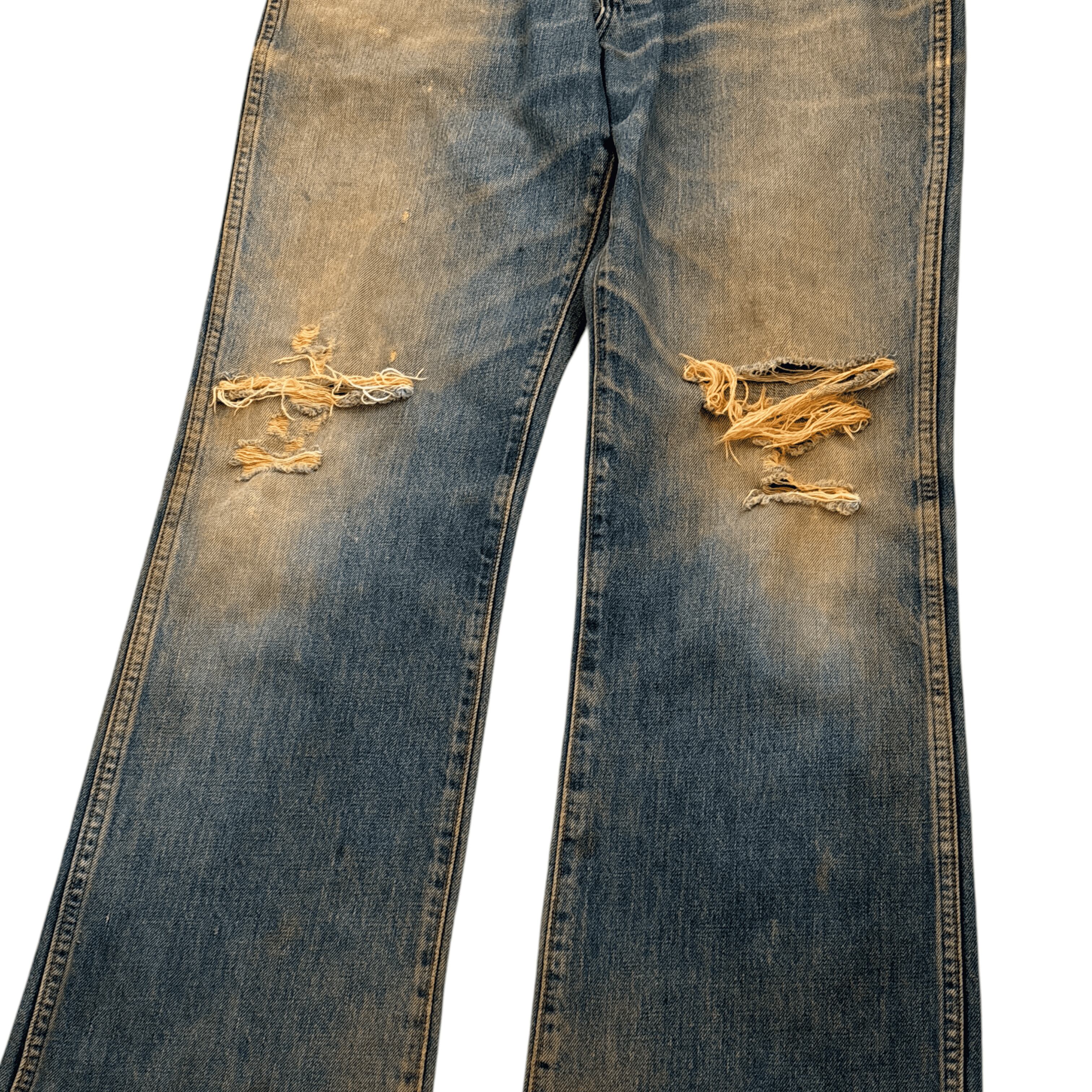 フェードがかった色味や色落ち、裾幅が約25.5cmとかなり太めのフレアシルエットが非常に魅力的な個体で、惹かれる方も多いと思います!