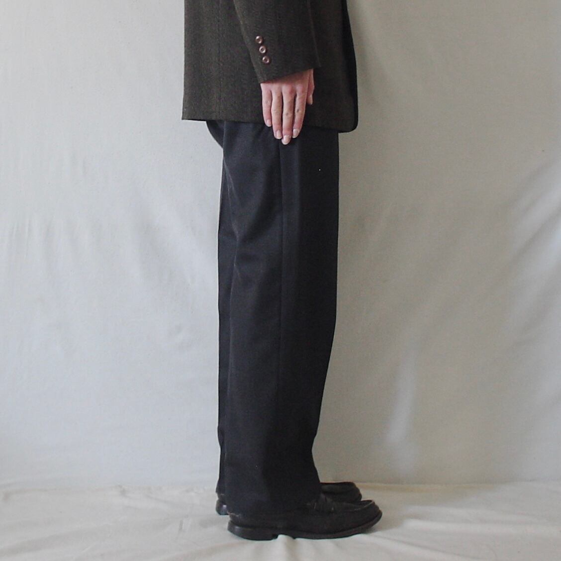 色味や綺麗なゆったりとしたシルエット、さらっとしたシルク混のウールの生地感が非常に魅力的な個体で、惹かれる方も多いと思います。