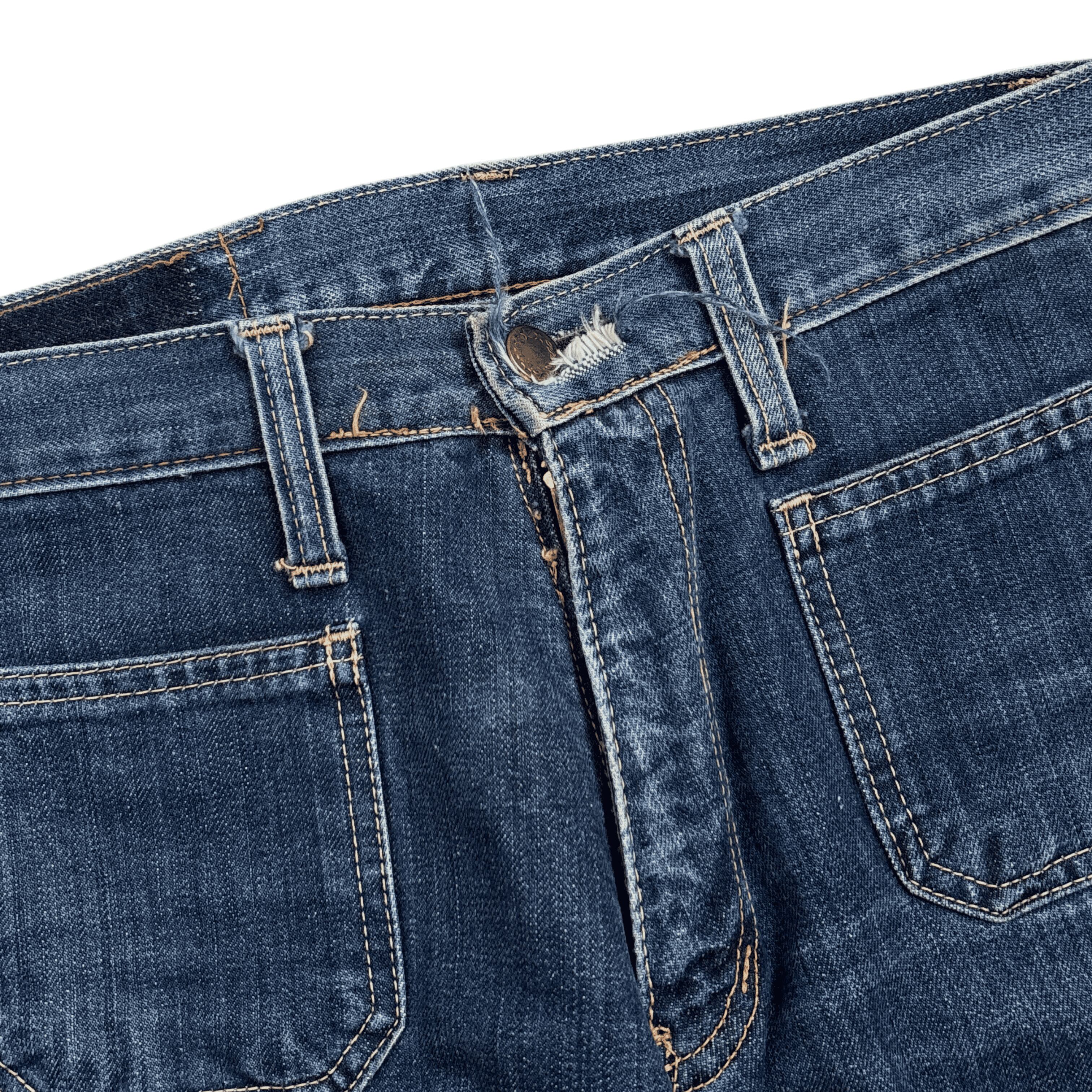 フェードがかった色味や綺麗な縦落ち、裾幅が約28cmと大きく広がったフレアシルエットが非常に魅力的な個体で、惹かれる方も多いと思います!
